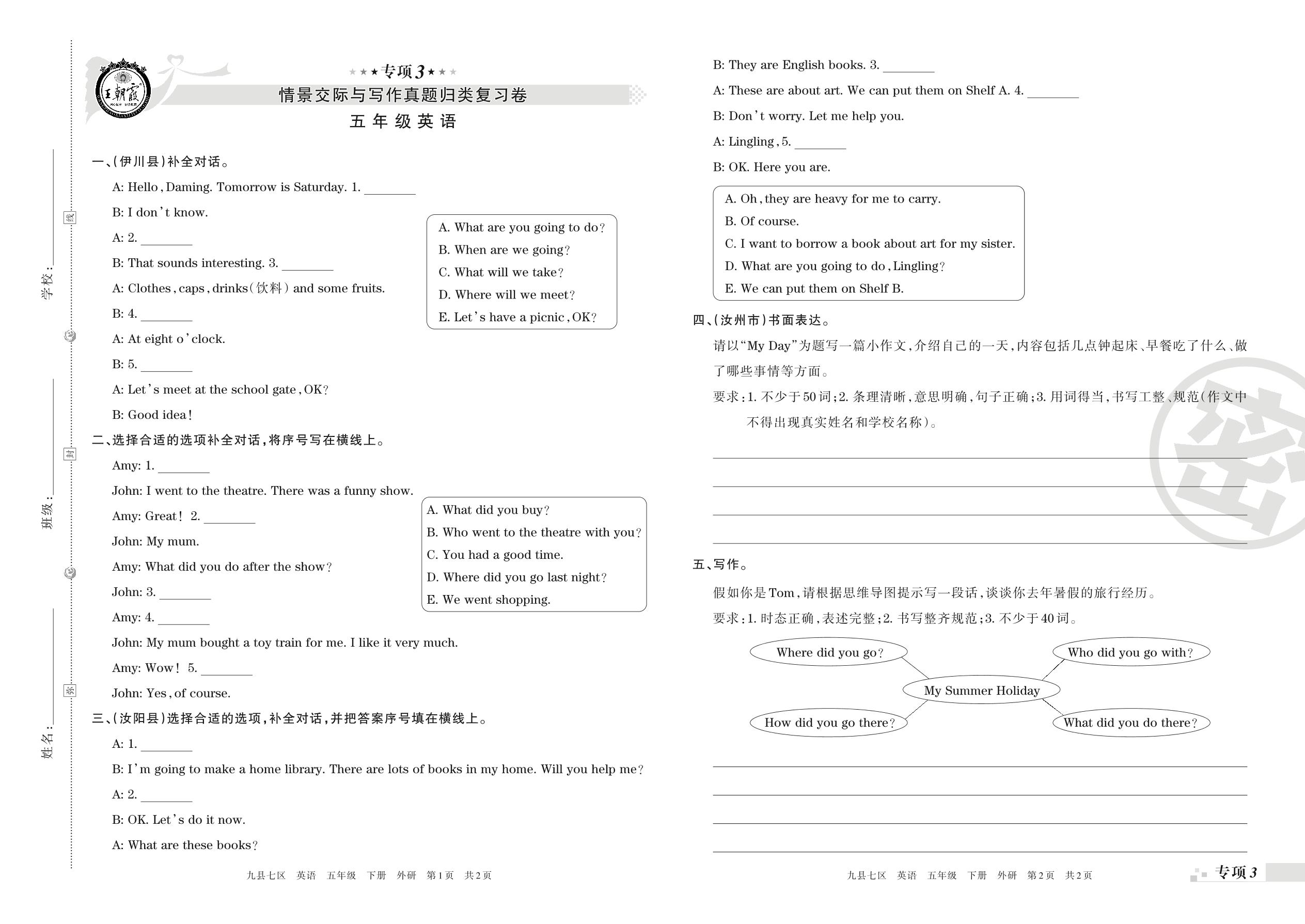 王朝霞期末专项卷——情景交际与书面表达真题归类复习、补全短文五年级下册英语(外研版)_R210807133326【0】