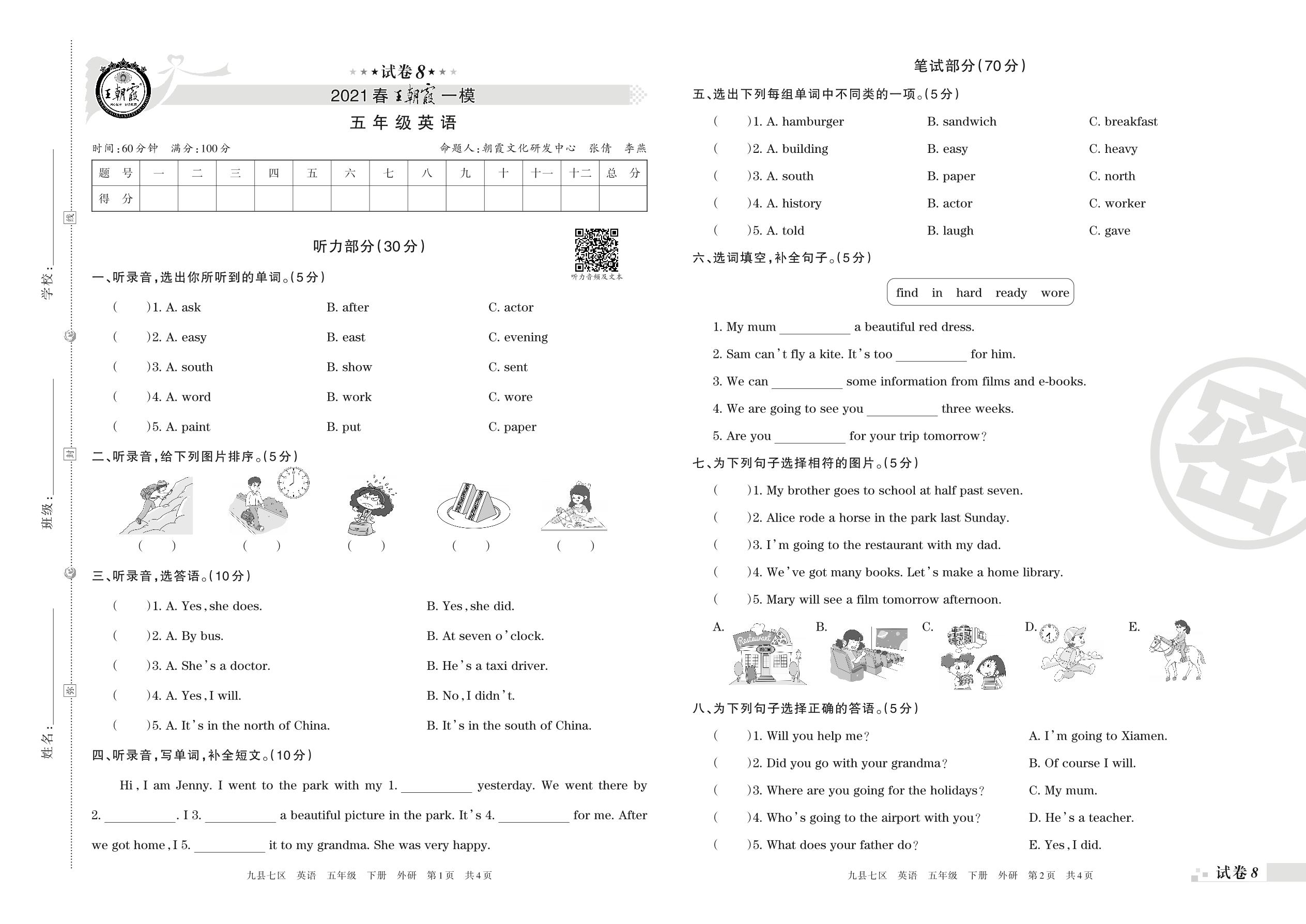 王朝霞期末模拟卷五年级下册英语(外研版)_R210807133402【8】