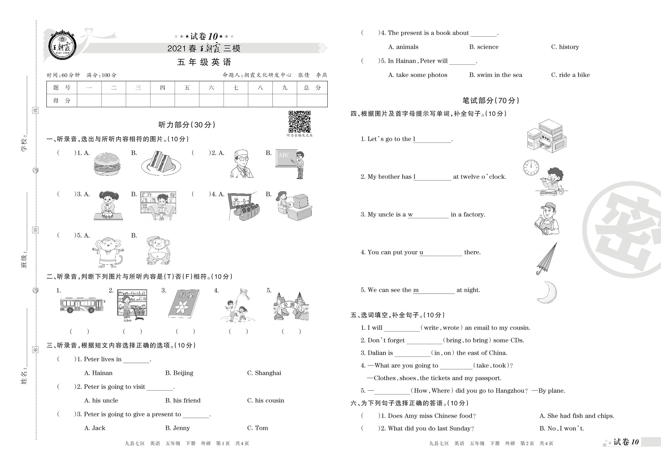 王朝霞期末模拟卷五年级下册英语(外研版)_R210807133411【10】