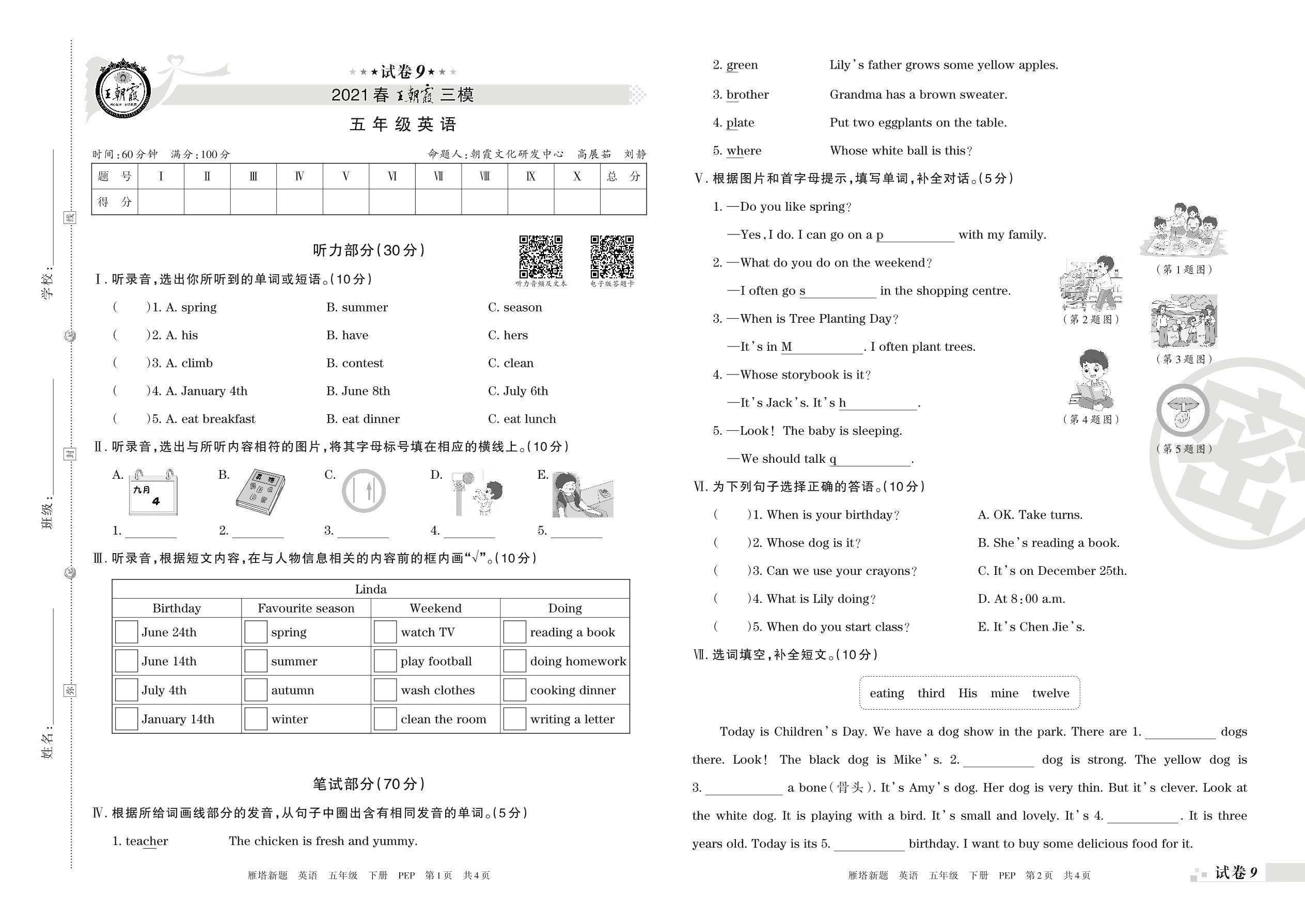 王朝霞期末模拟卷五年级下册英语(PEP版)_R210807133558【9】