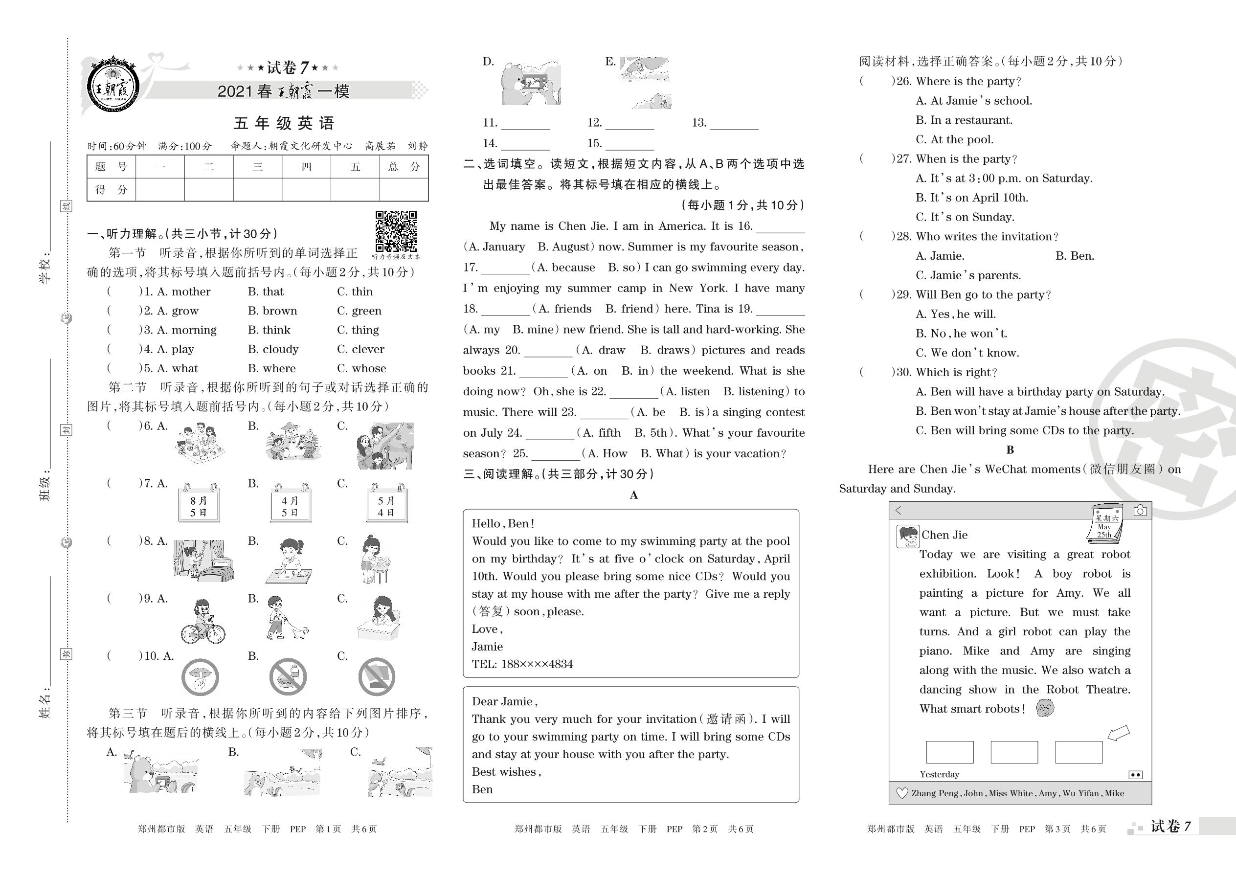 王朝霞期末模拟卷五年级下册英语(PEP版)_R210807133700【7】