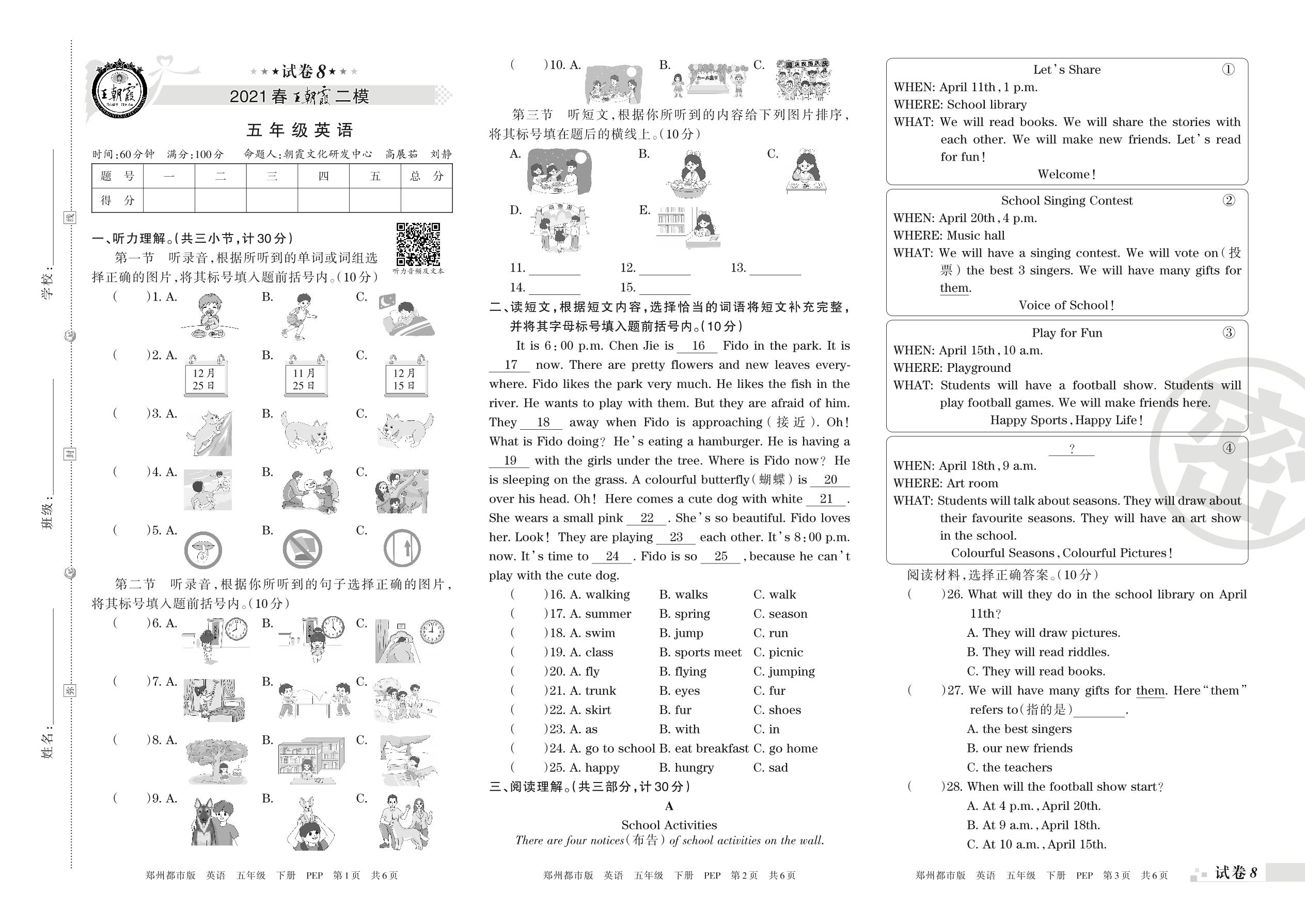 王朝霞期末模拟卷五年级下册英语(PEP版)_R210807133707【8】