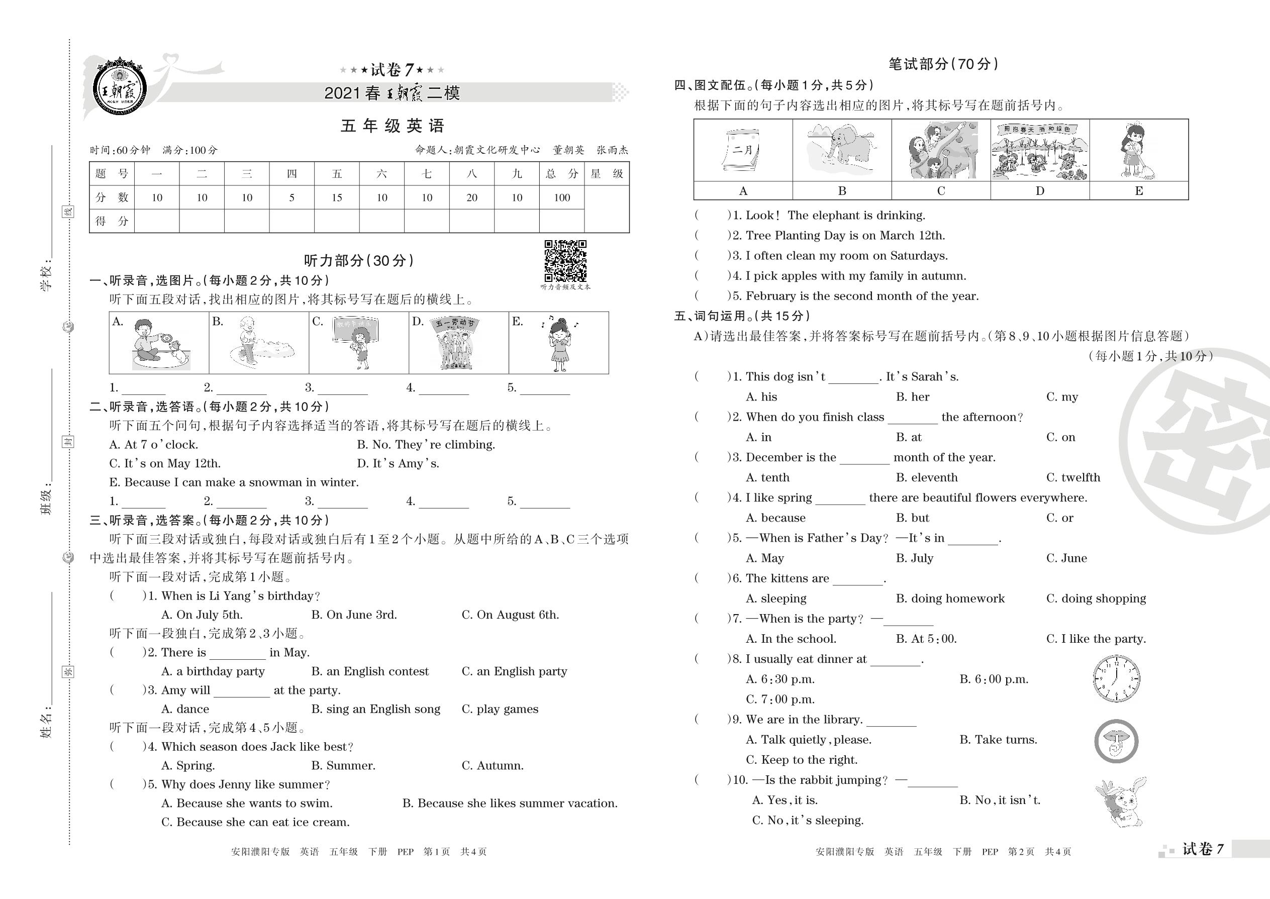 王朝霞期末模拟卷五年级下册英语(PEP版)_R210807133816【7】