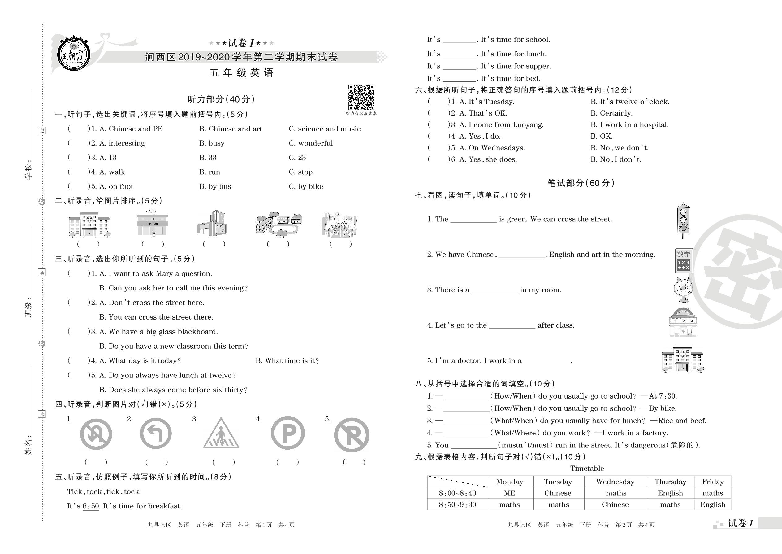 2019-2020学年第二学期洛阳市涧西区五年级英语试卷(科普版)_R210807133845【1】
