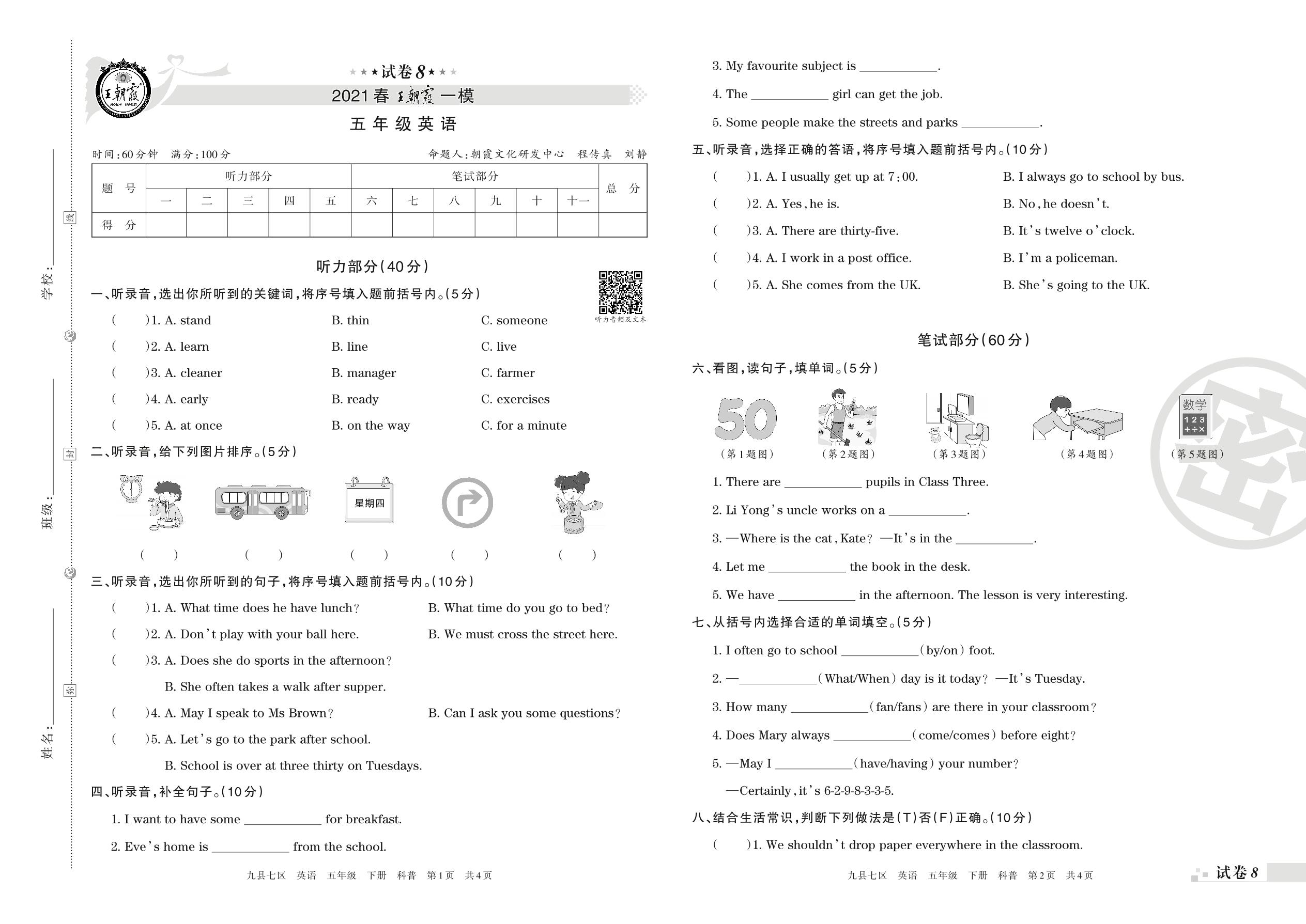 王朝霞期末模拟卷五年级下册英语(科普版)_R210807133946【8】