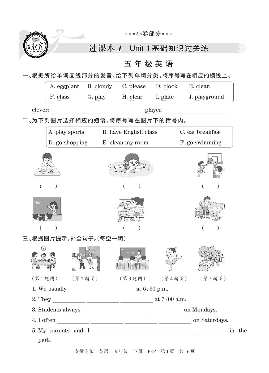 五年级英语人教PEP版(三起始)下册过课本