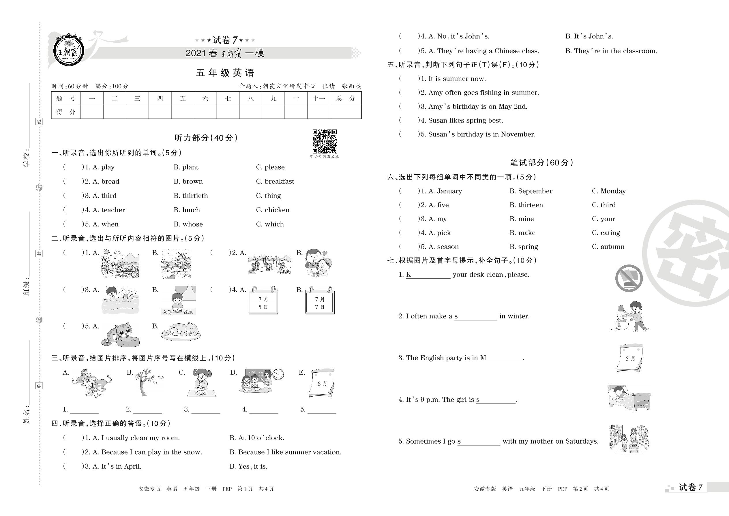 王朝霞期末模拟卷五年级下册英语(PEP版)_R210807134058【7】
