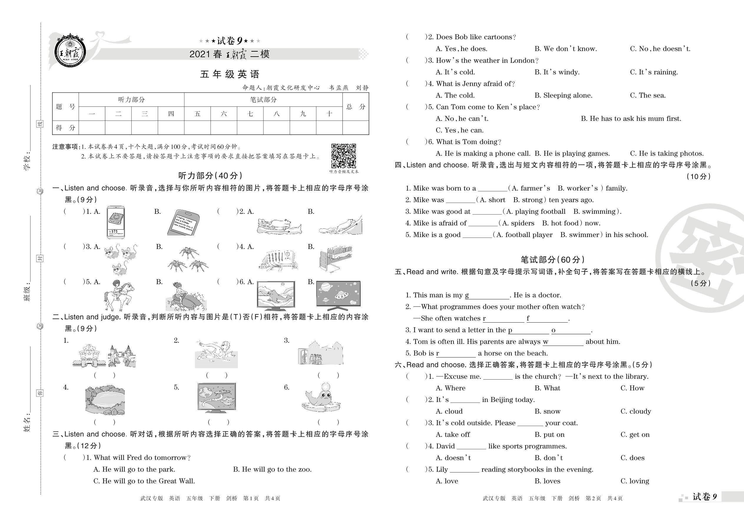 王朝霞期末模拟卷五年级下册英语(剑桥版)_R210807134216【9】