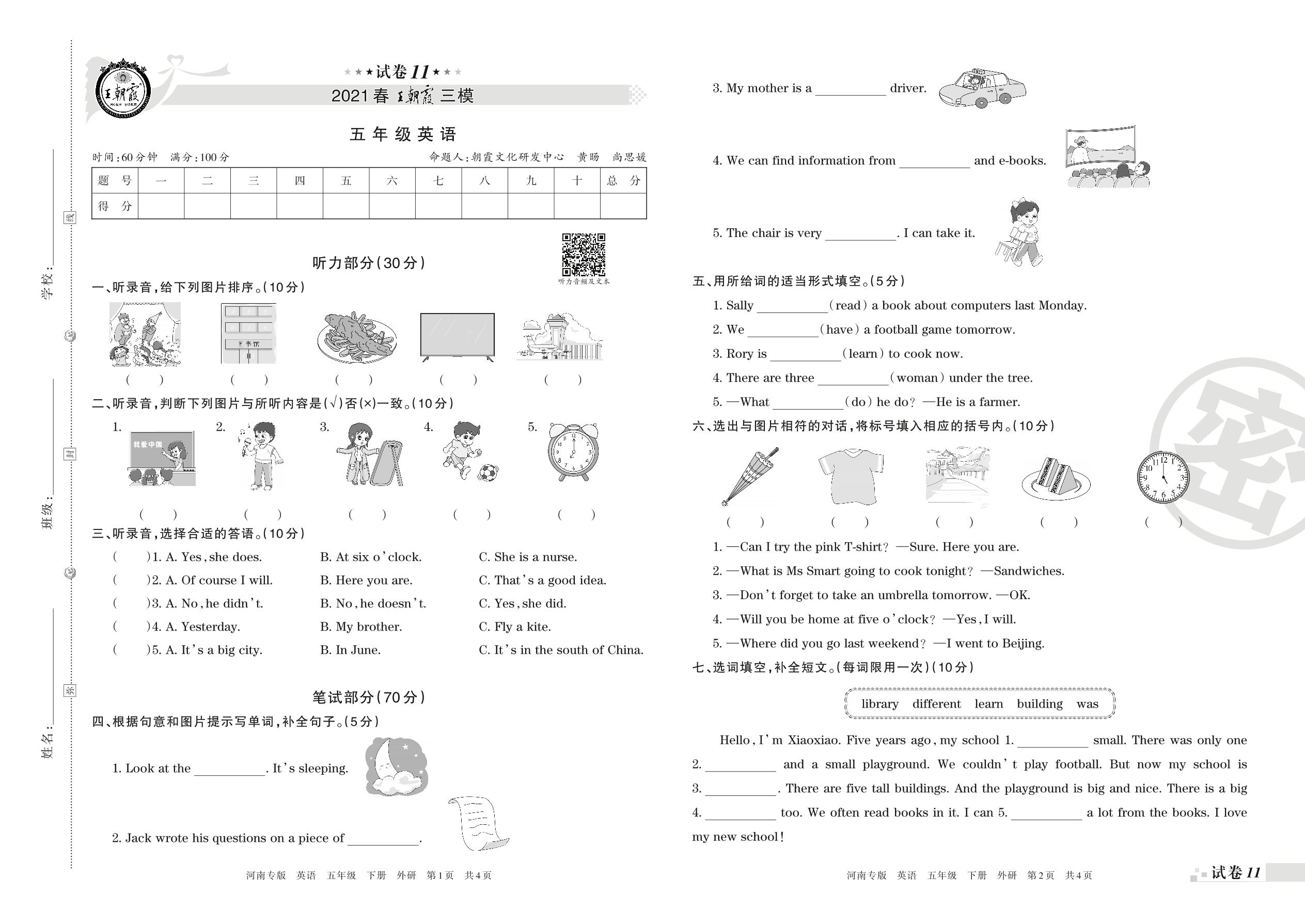 王朝霞期末模拟卷五年级下册英语(外研版)_R210807134433【11】