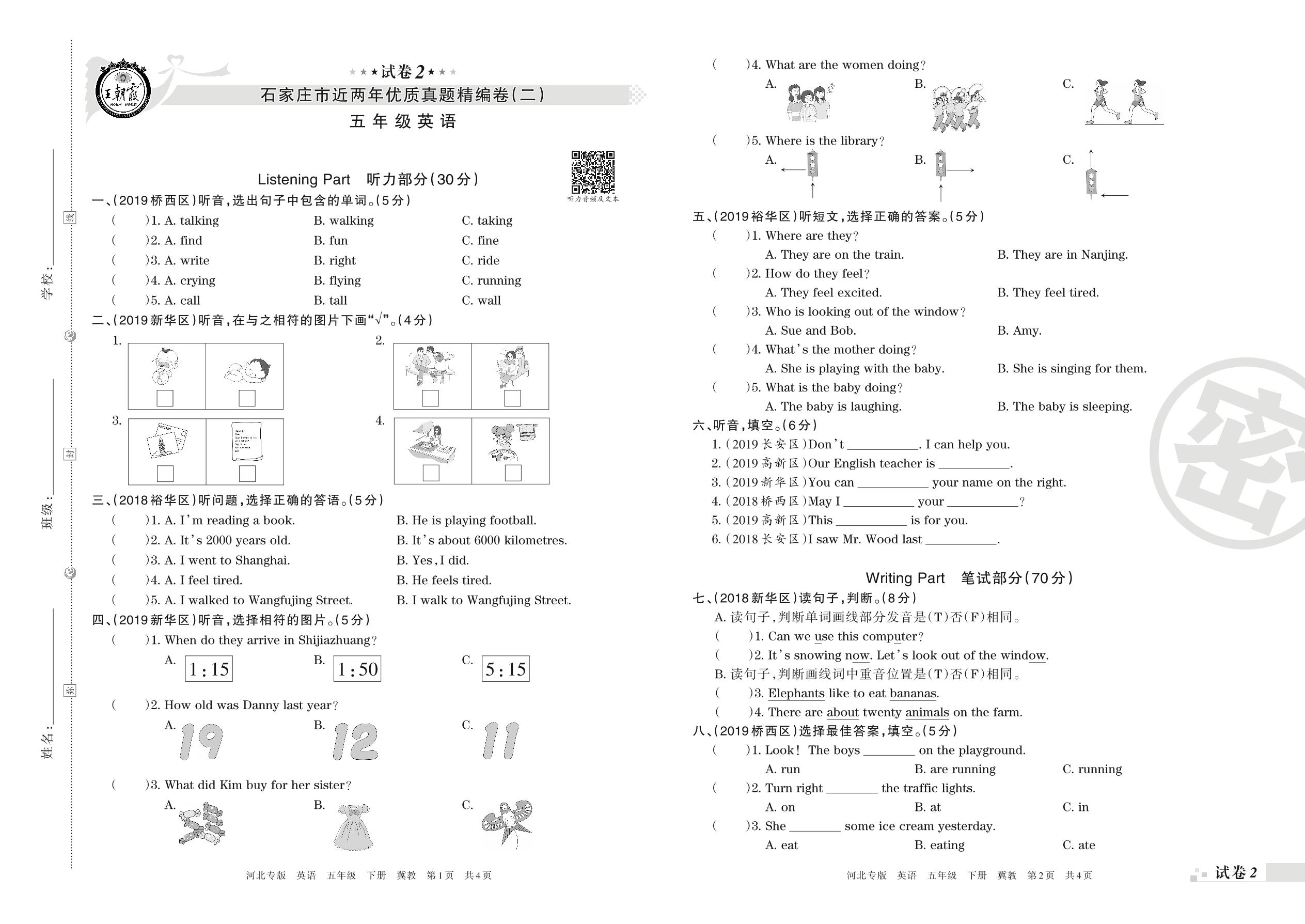 石家庄市近两年优质真题精编卷(二)五年级下册英语(冀教版)【2】