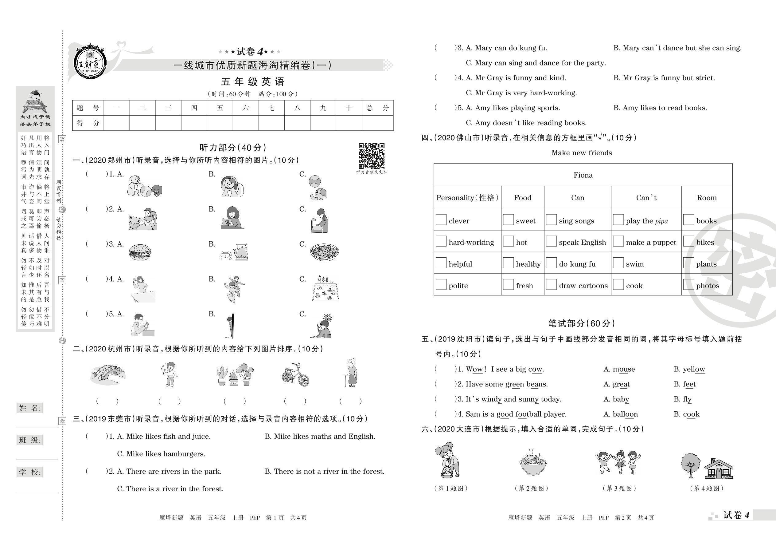 王朝霞海淘期末精编卷五年级上册英语(PEP版)【4】