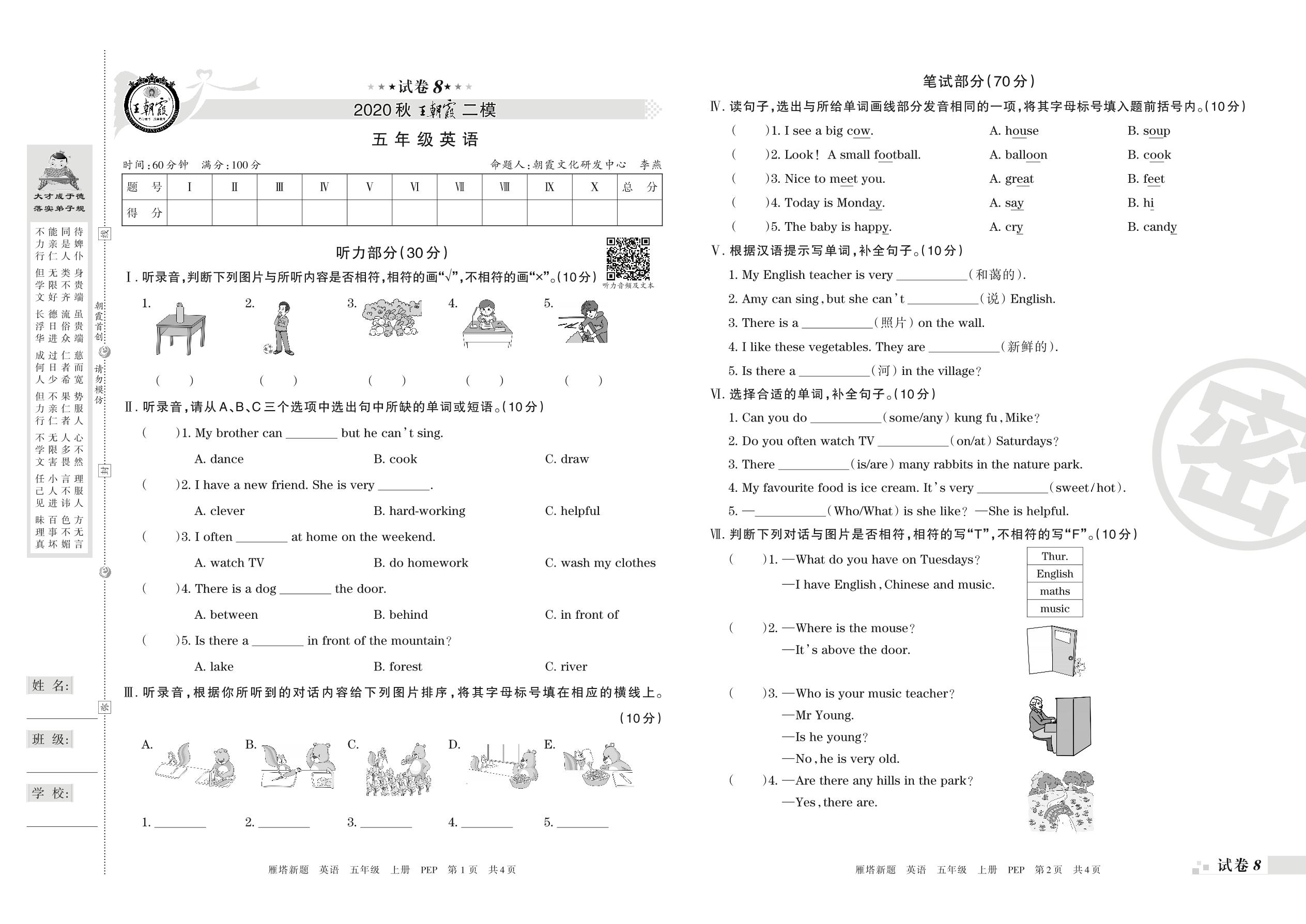王朝霞期末模拟卷五年级上册英语(PEP版)_R210807135154【8】