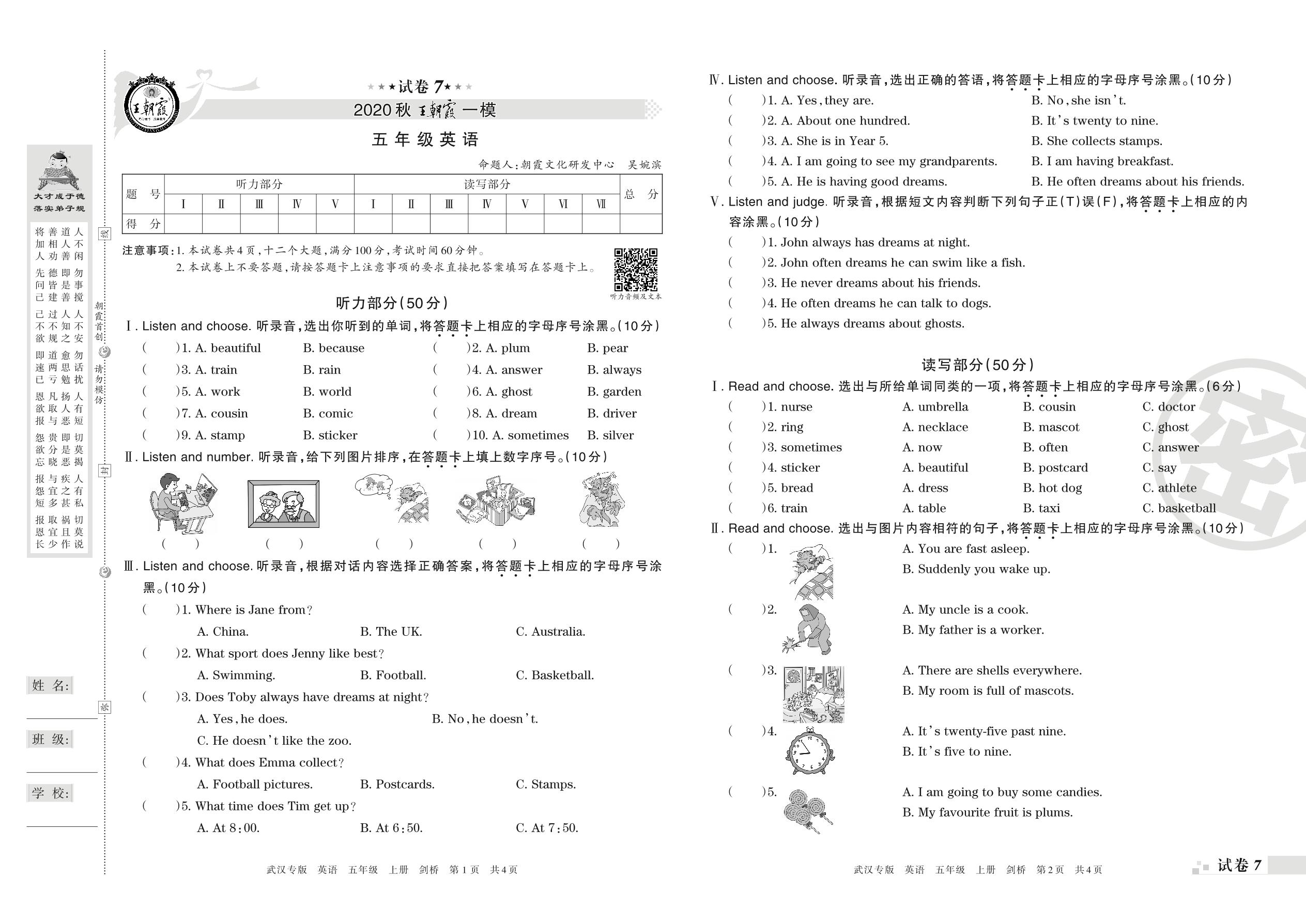 王朝霞期末模拟卷五年级上册英语(剑桥版)_R210807135313【7】