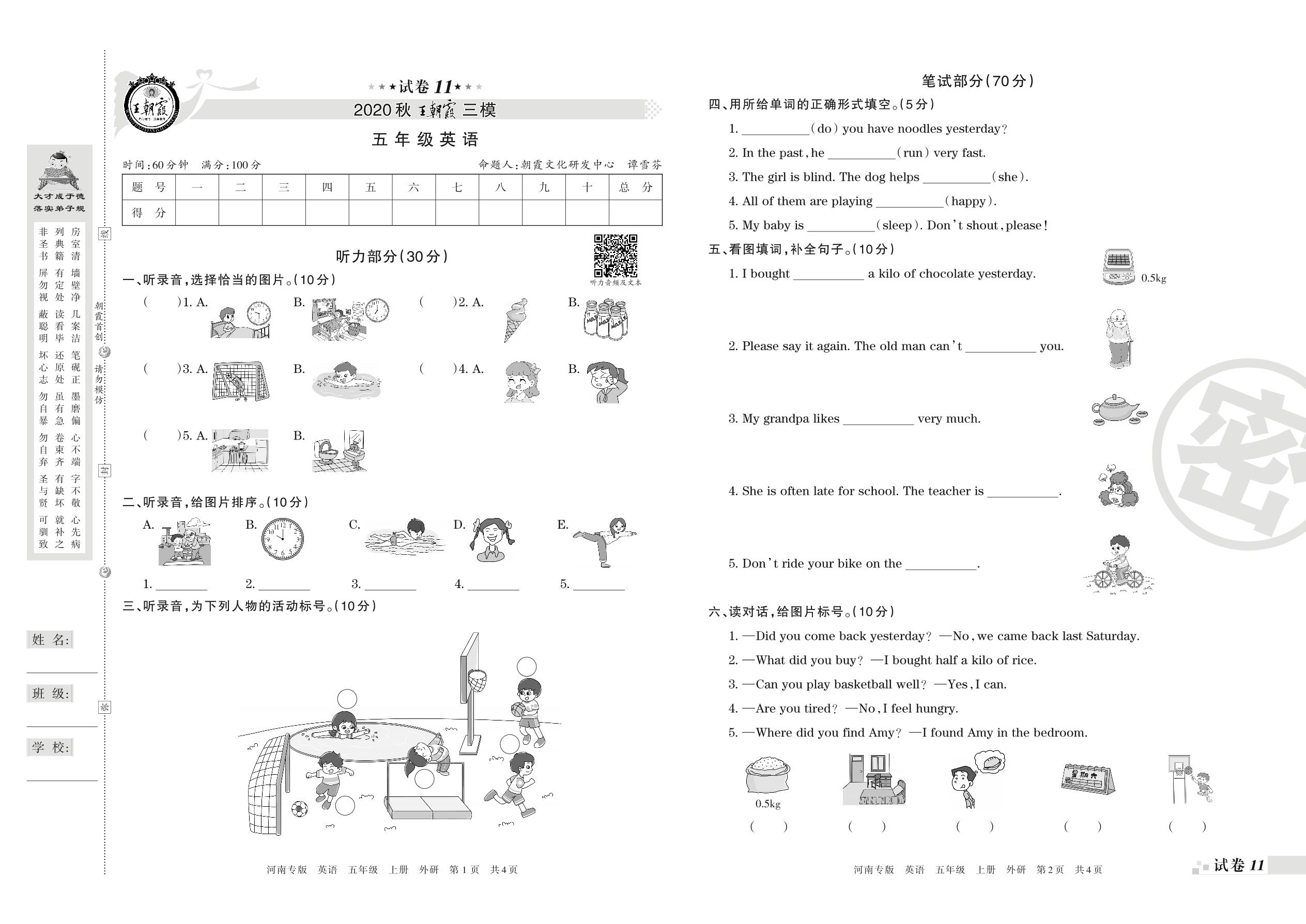 王朝霞期末模拟卷五年级上册英语(外研版)_R210807135443【11】