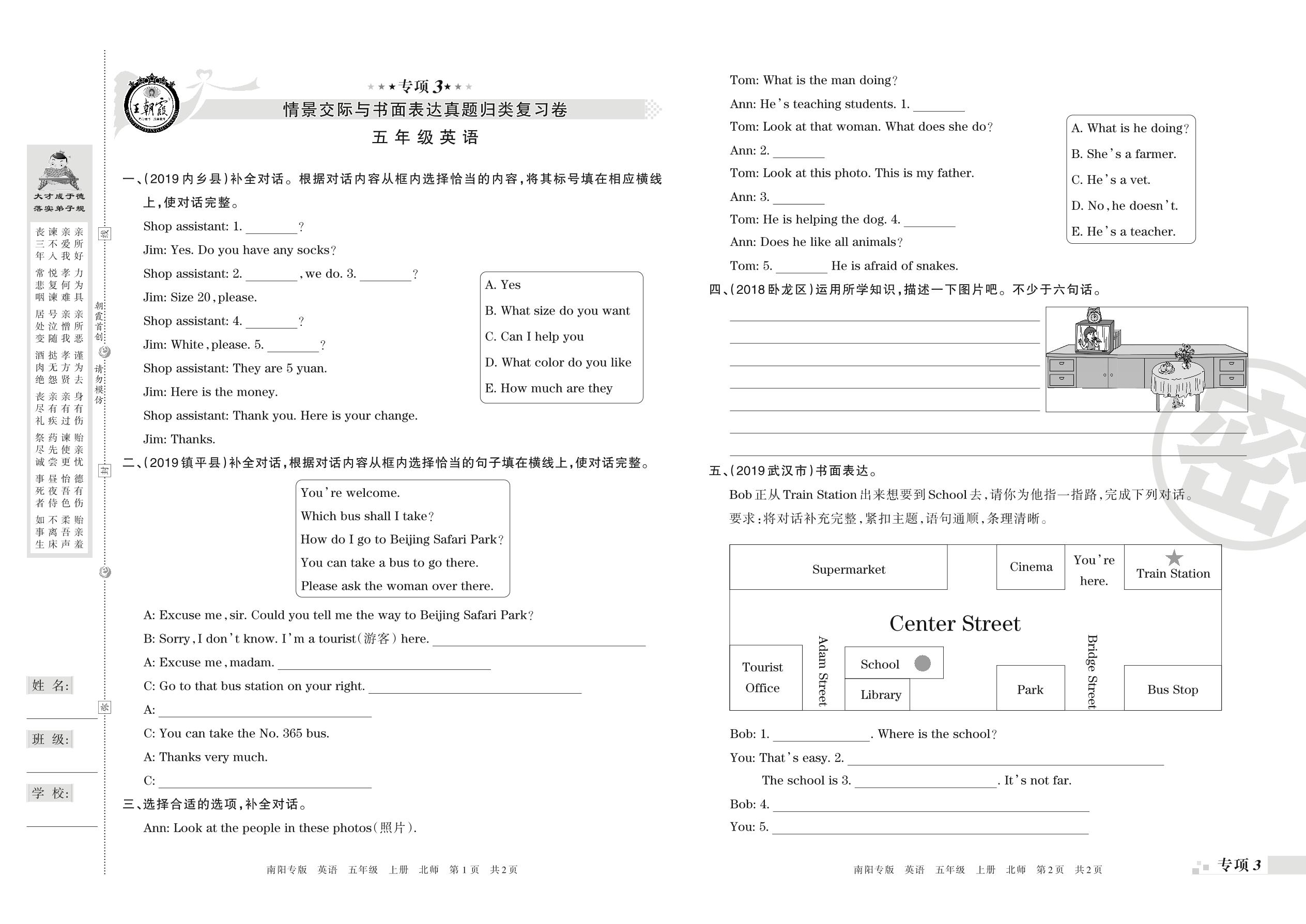 王朝霞期末专项卷——情景交际与书面表达真题归类复习、绘本阅读五年级上册英语(北师版)