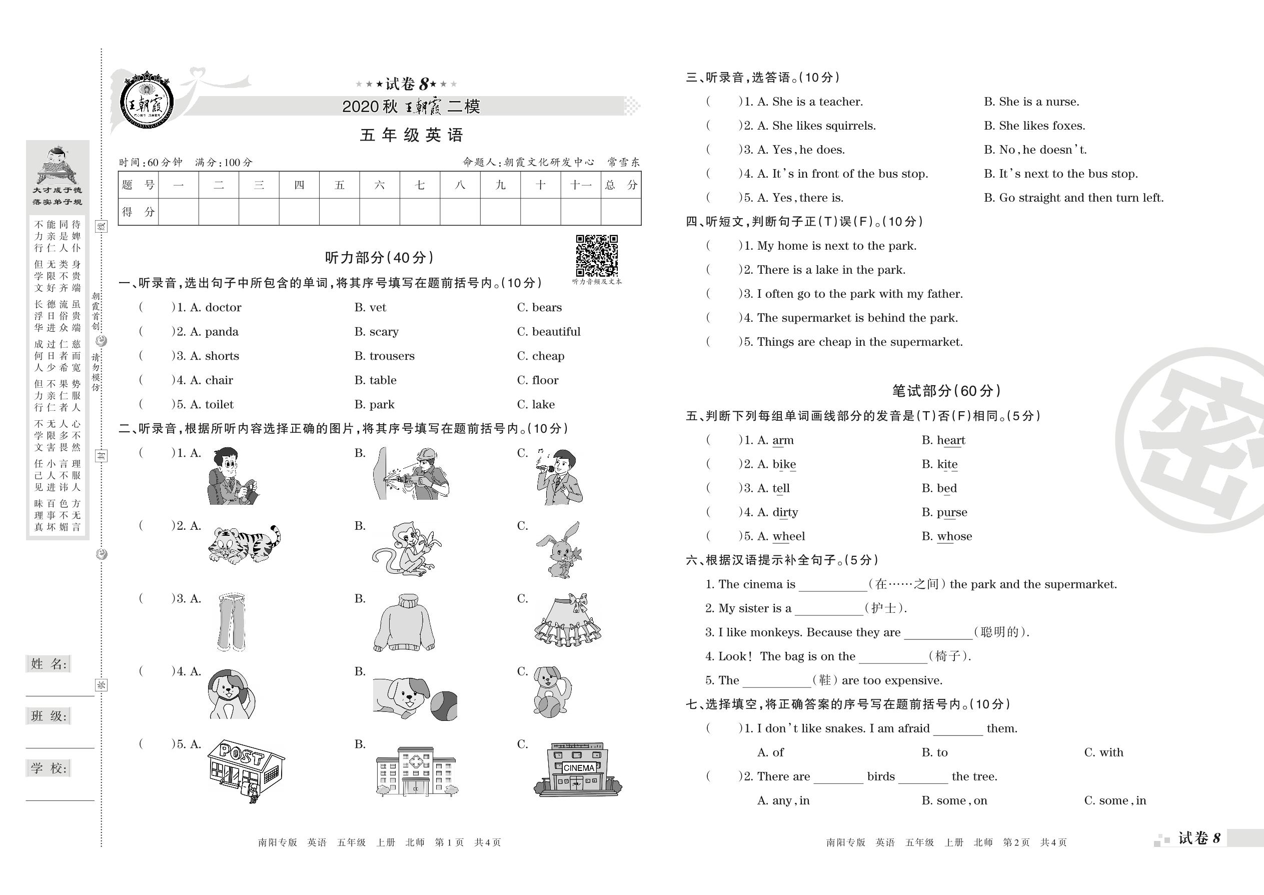 王朝霞期末模拟卷五年级上册英语(北师版)_R210807135526【8】