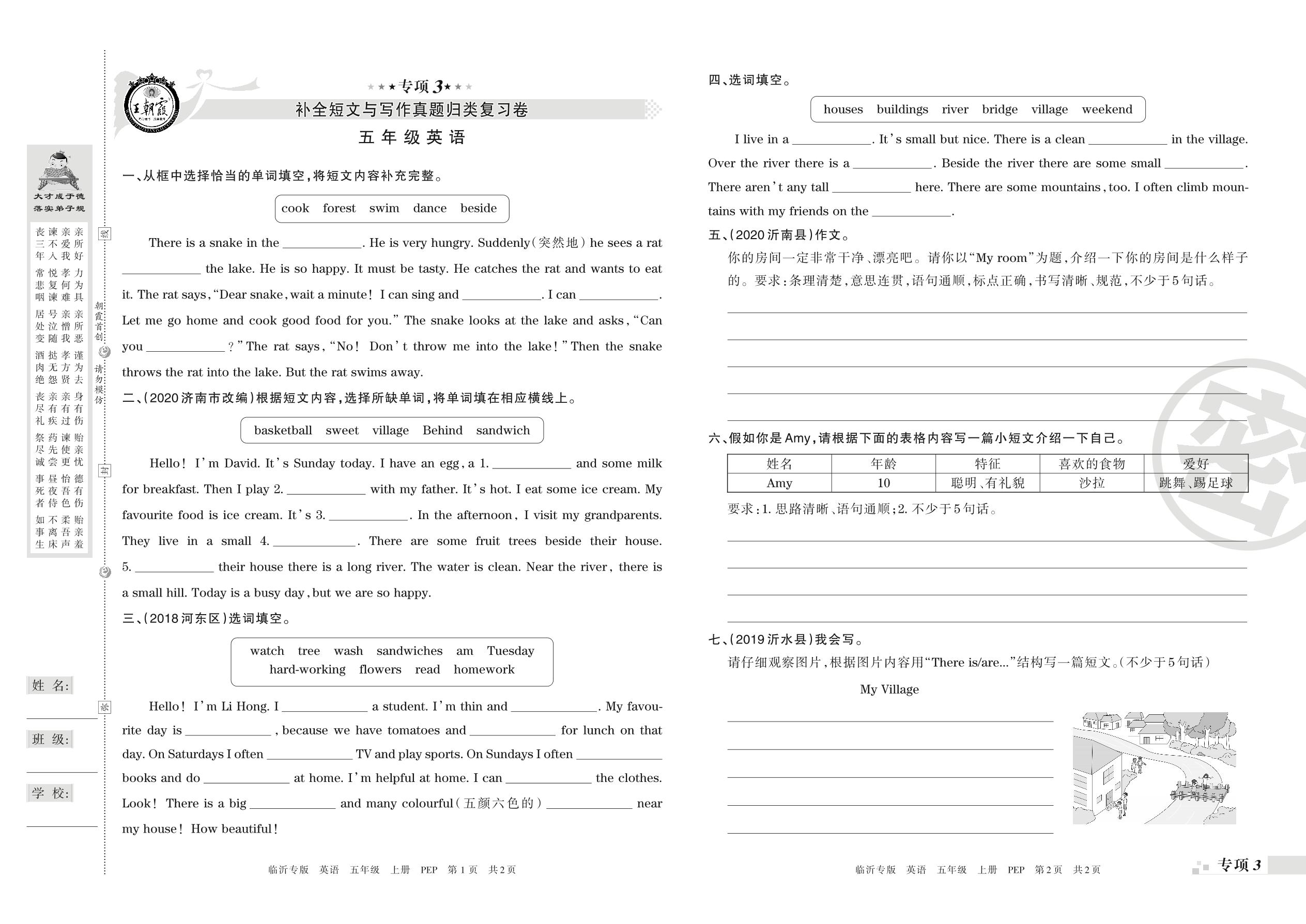 王朝霞期末专项卷——补全短文与写作真题归类复习五年级上册英语(PEP版)【0】
