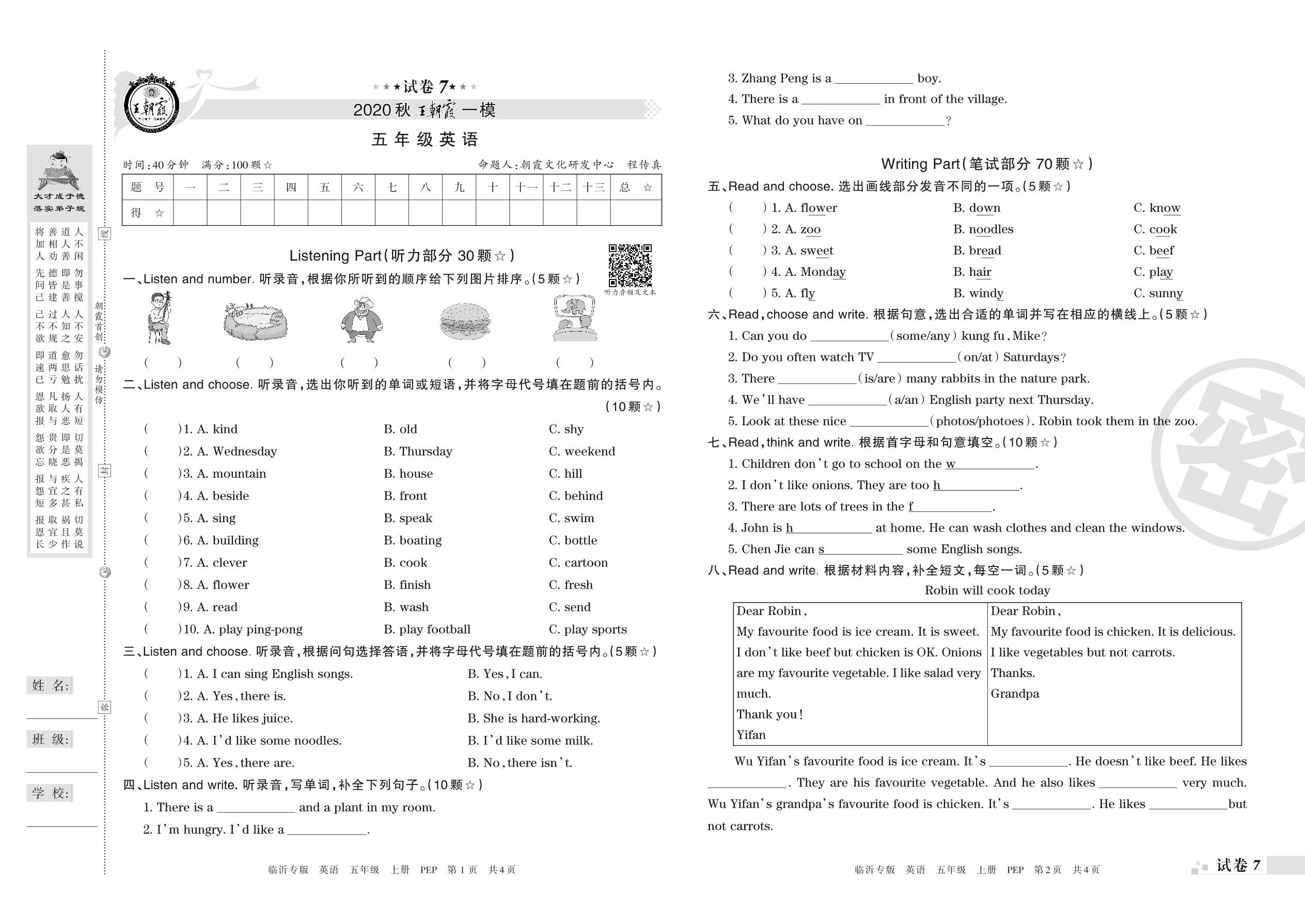 王朝霞期末模拟卷五年级上册英语(PEP版)_R210807135613【7】