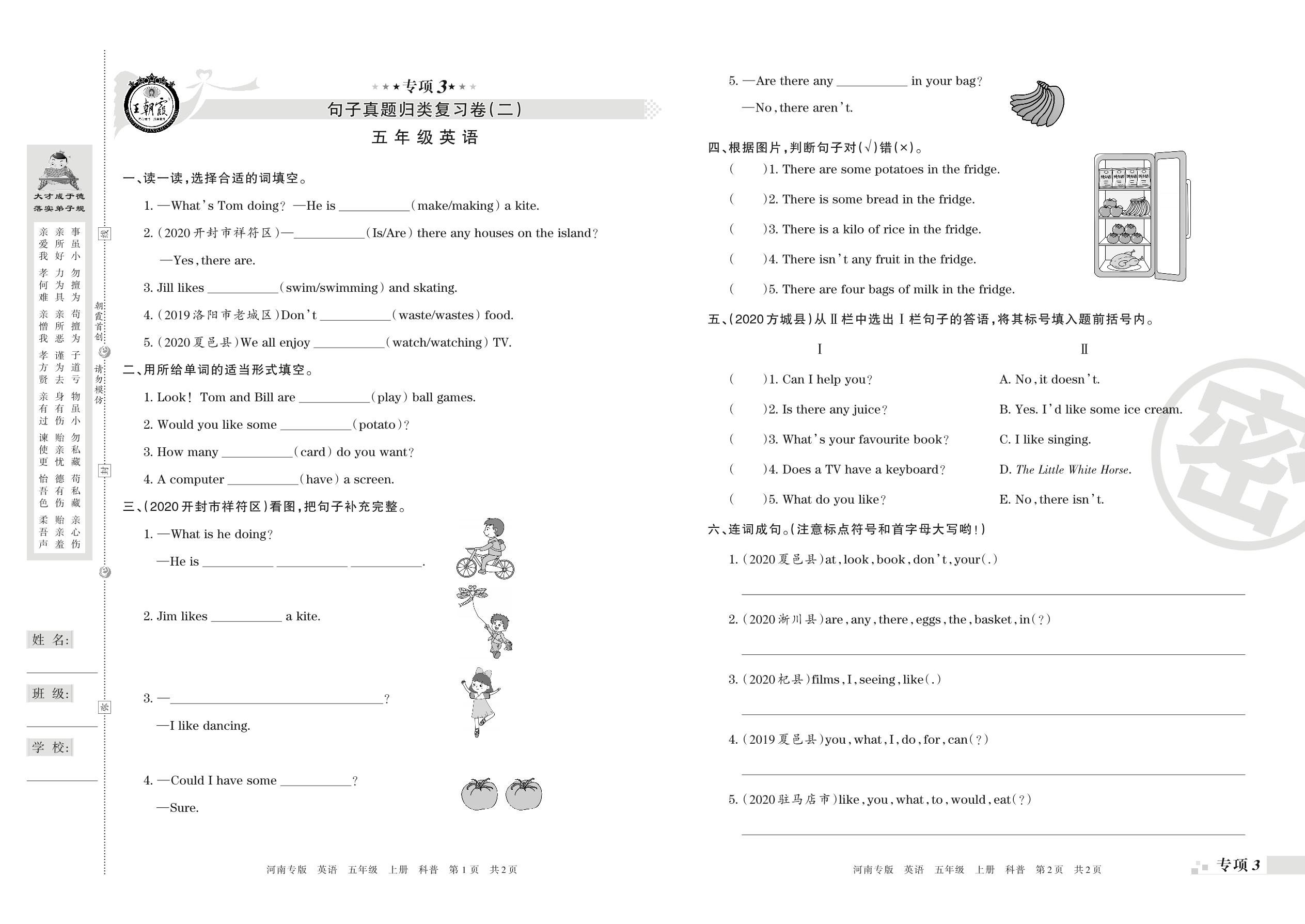 王朝霞期末专项卷——句子、情景交际真题归类复习五年级上册英语(科普版)【0】