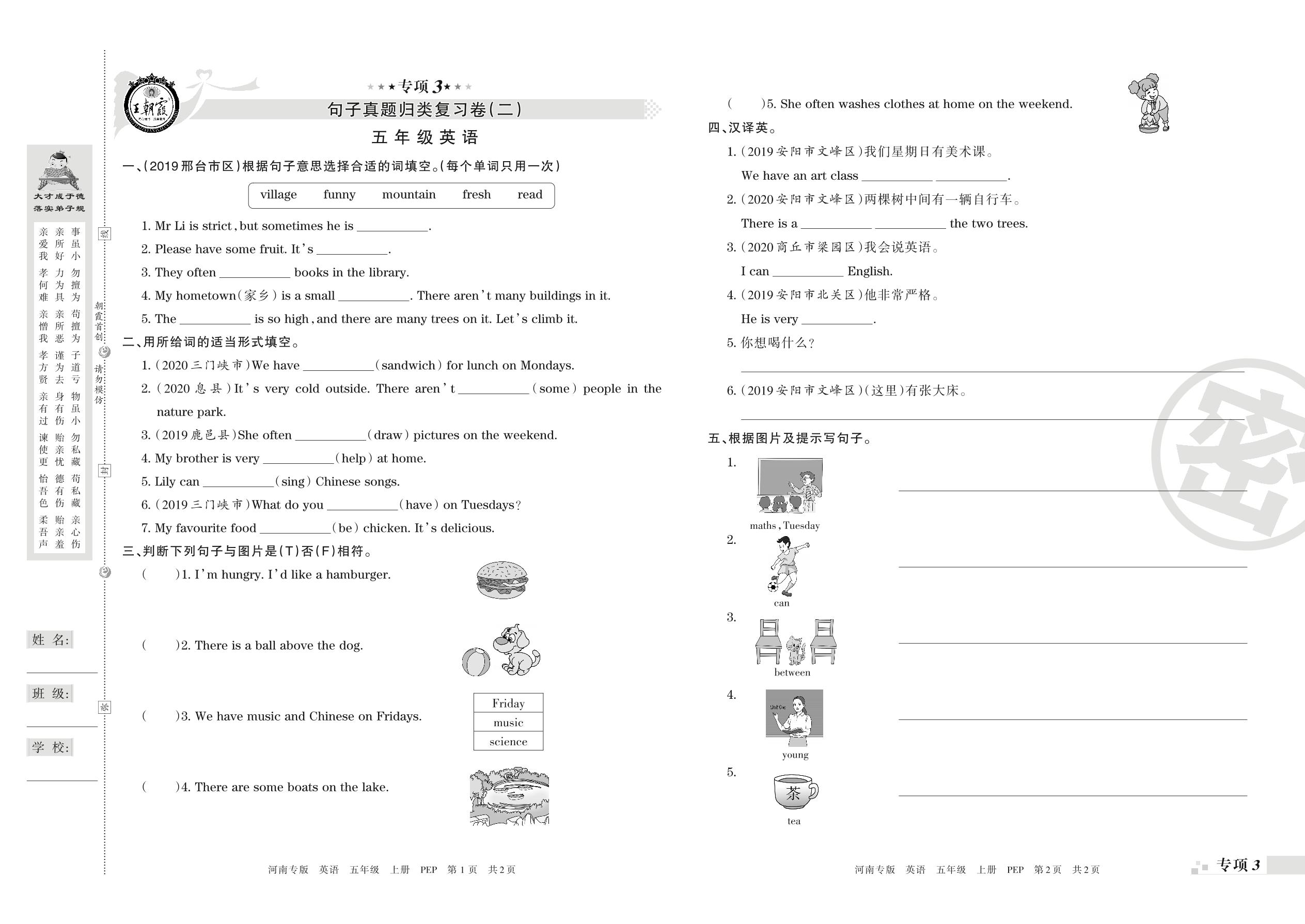 王朝霞期末专项卷——句子、情景交际真题归类复习五年级上册英语(PEP版)【0】