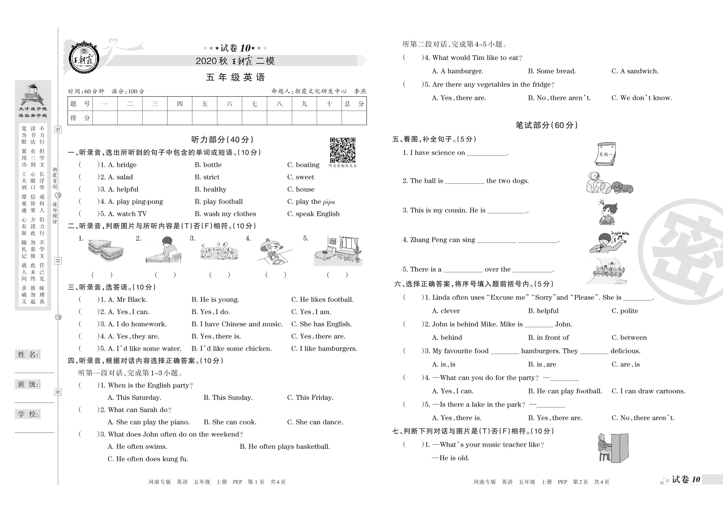 王朝霞期末模拟卷五年级上册英语(PEP版)_R210807135955【10】