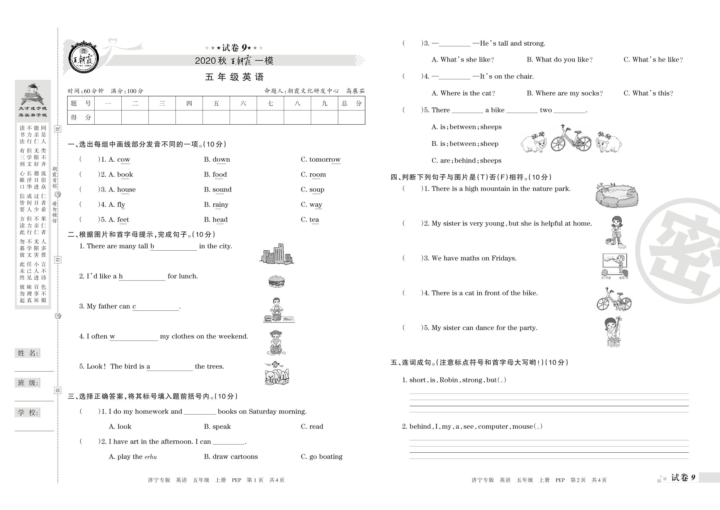 王朝霞期末模拟卷五年级上册英语(PEP版)_R210807140049【9】