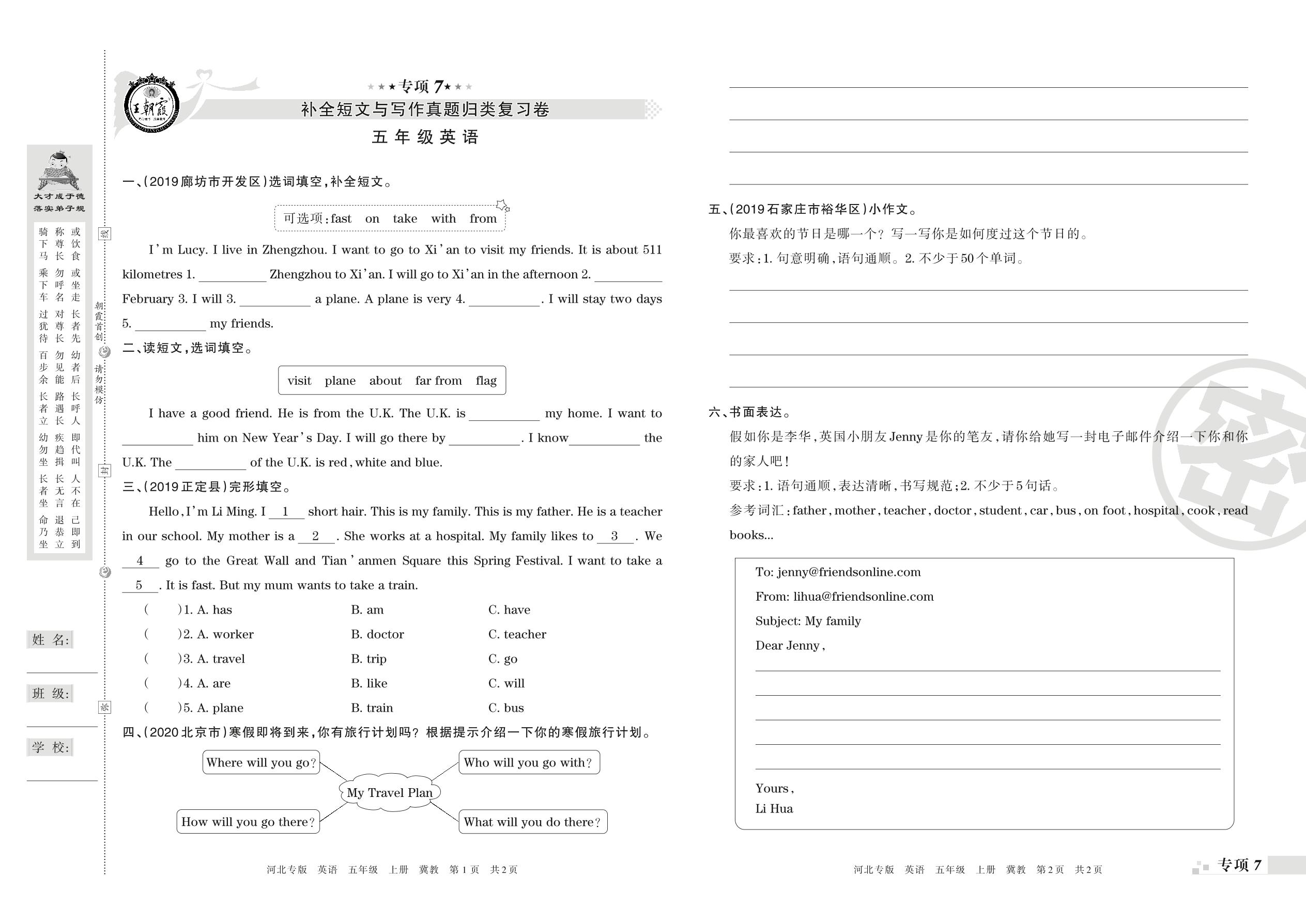 王朝霞期末专项卷——补全短文与写作真题归类复习、绘本阅读五年级上册英语(冀教版)【0】