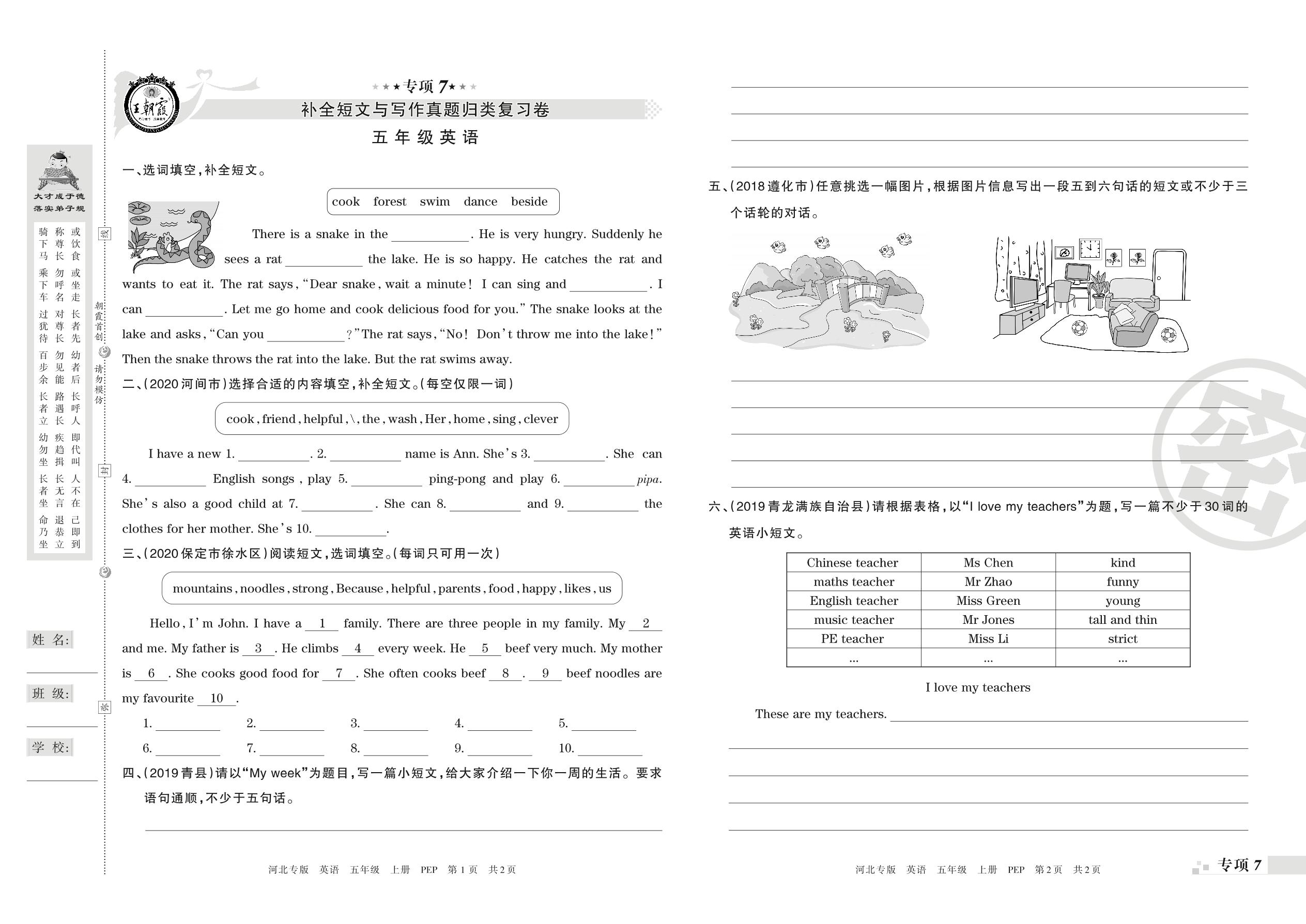 王朝霞期末专项卷——补全短文与写作真题归类复习、绘本阅读五年级上册英语(PEP版)【0】