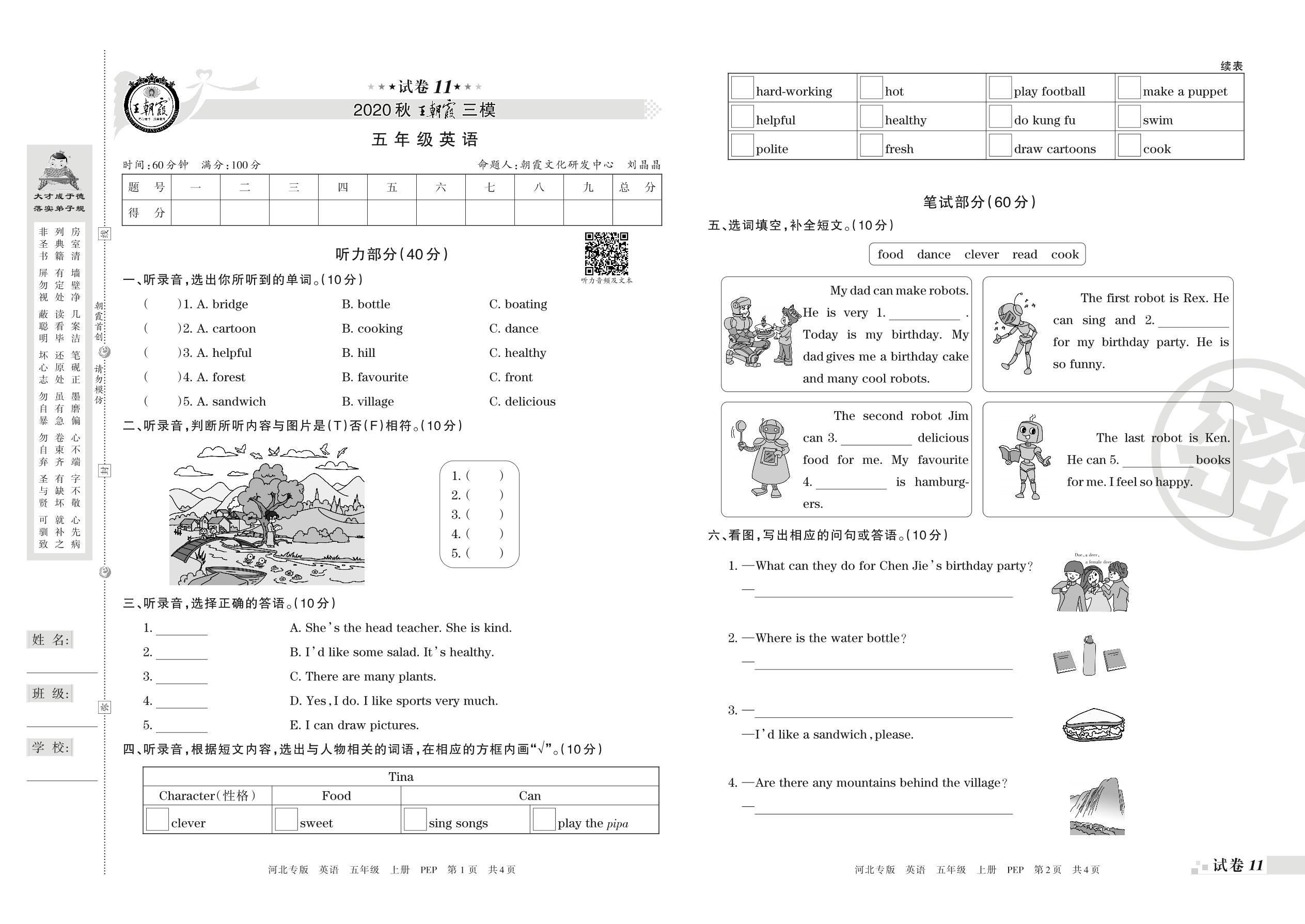 王朝霞期末模拟卷五年级上册英语(PEP版)【11】