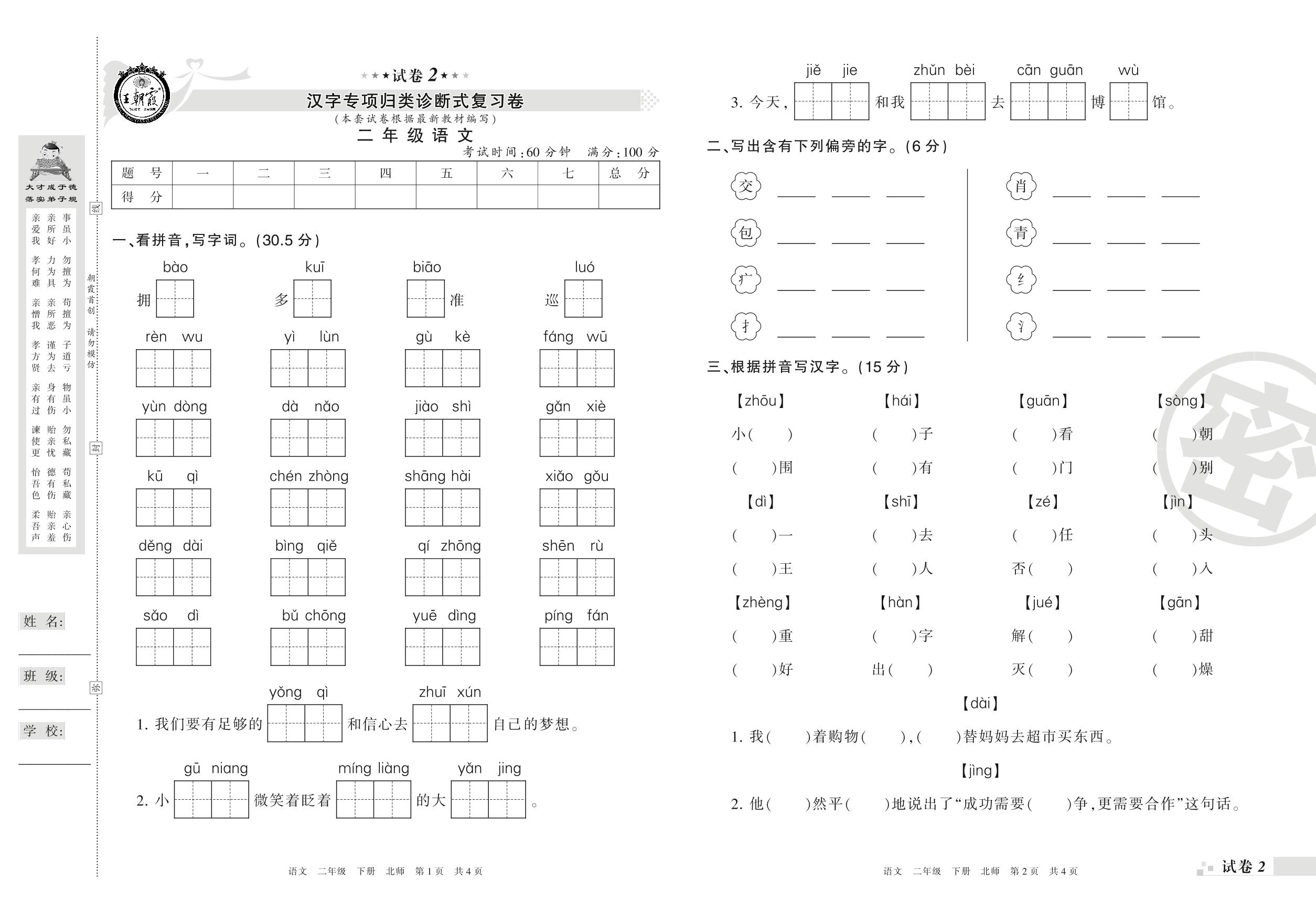 王朝霞期末专项卷——汉字专项归类诊断式复习卷二年级下册语文(北师版)_R21080181946【2】