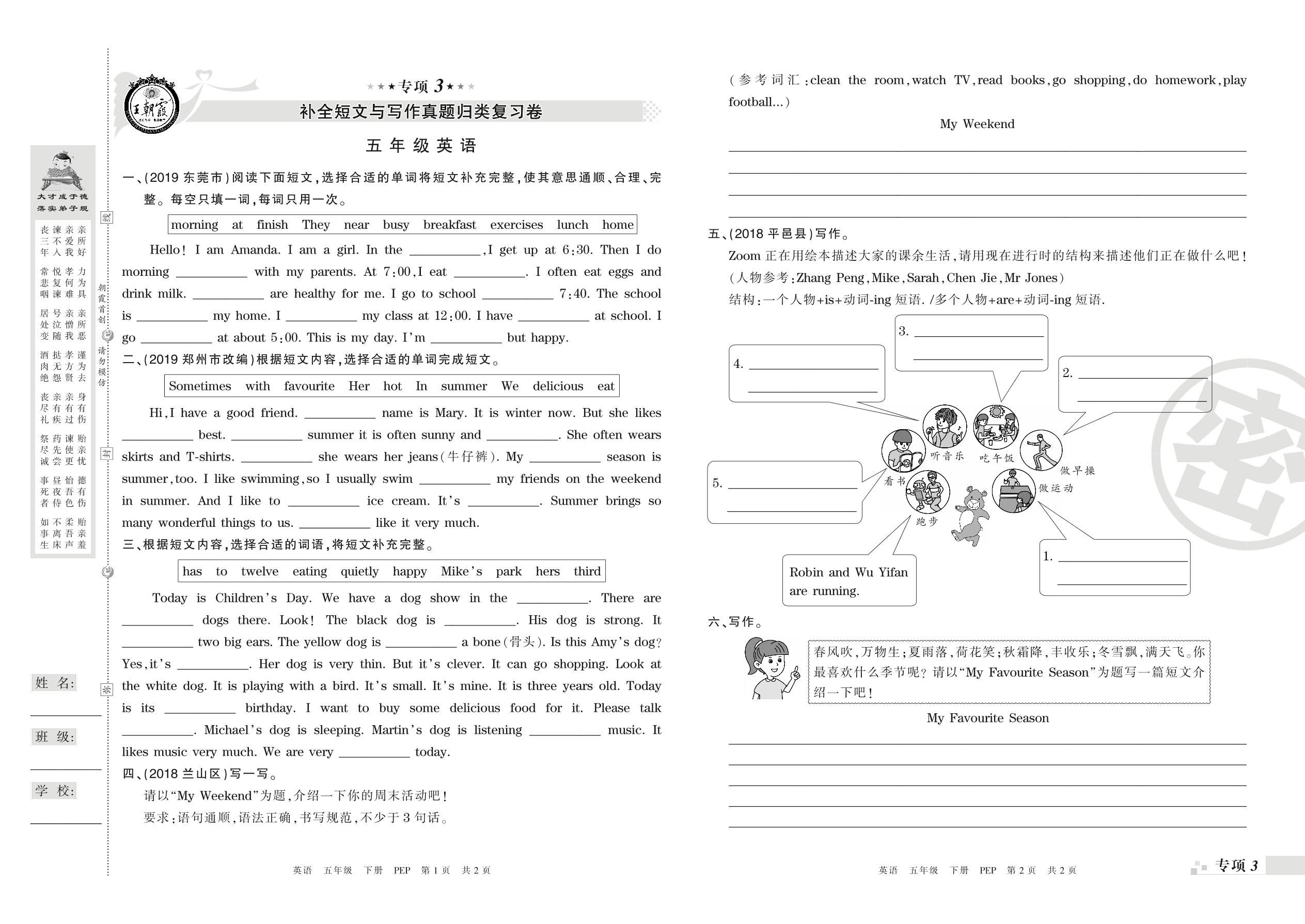 王朝霞期末专项卷——补全短文与写作真题归类复习卷、新颖题速递:绘本阅读五年级下册英语(PEP版)_R210807141433【0】
