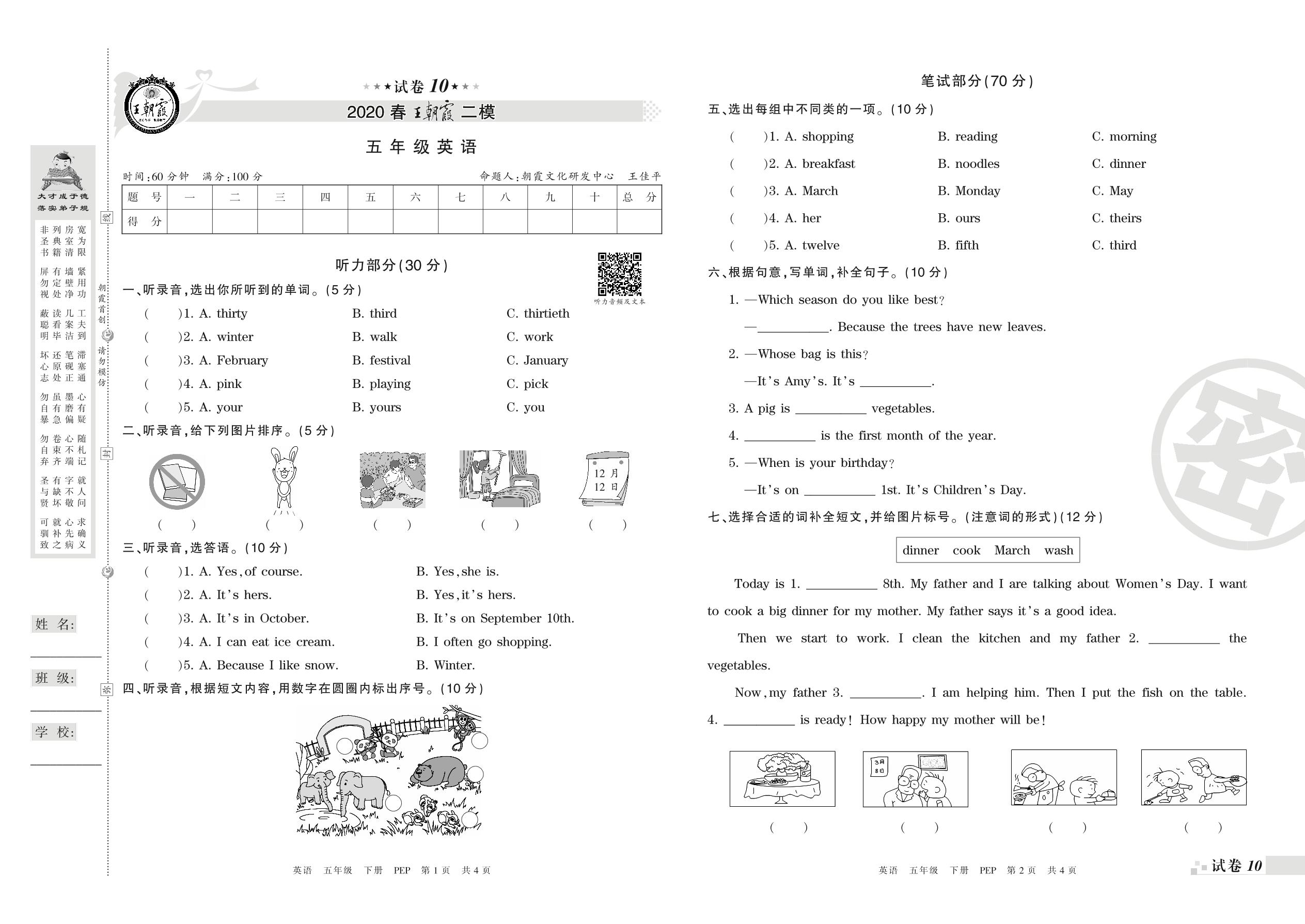 王朝霞期末模拟卷五年级下册英语(PEP版)_R210807141554【10】