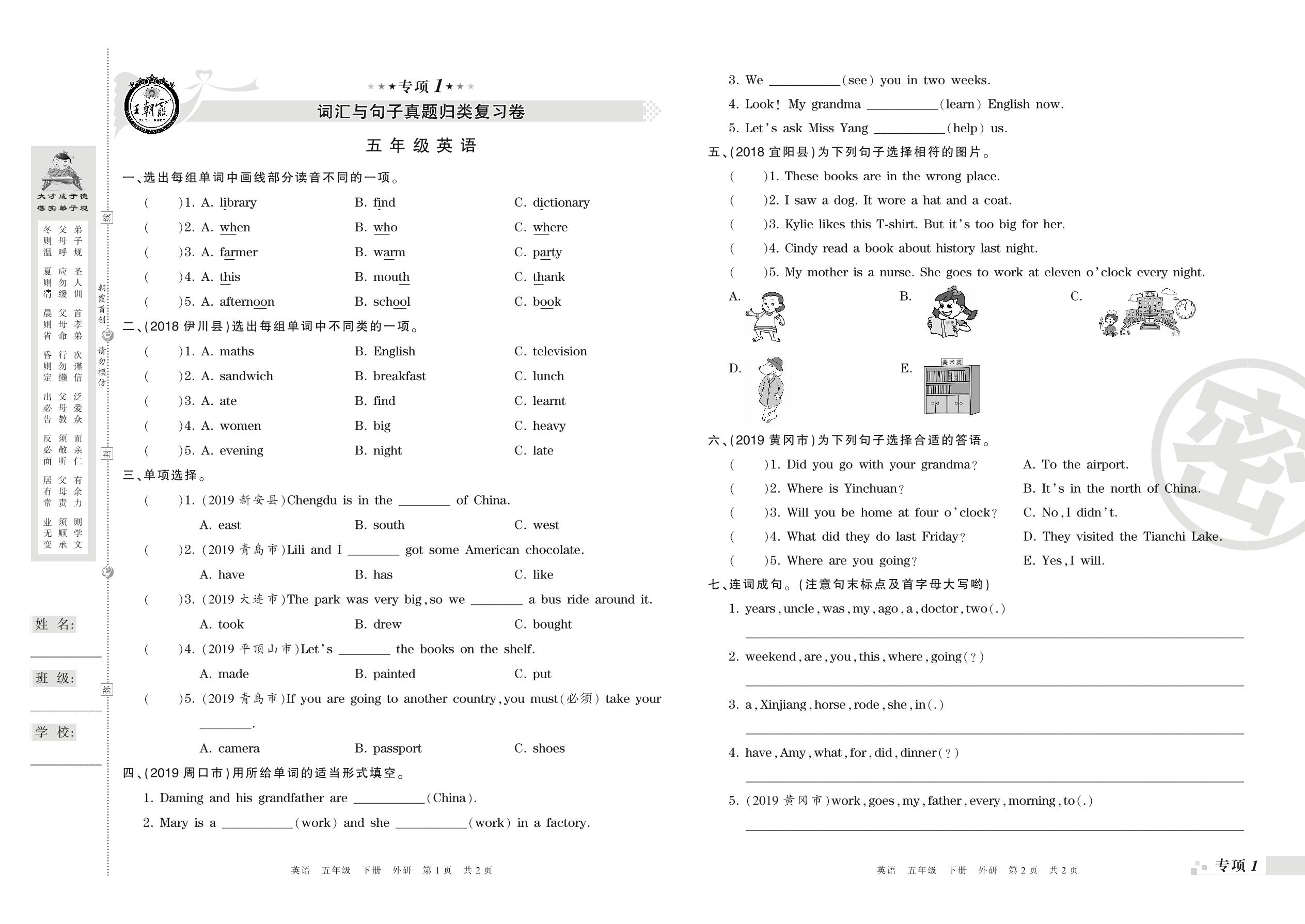 王朝霞期末专项卷——词汇与句子、情景交际真题归类复习卷五年级下册英语(外研版)_R210807141904【0】