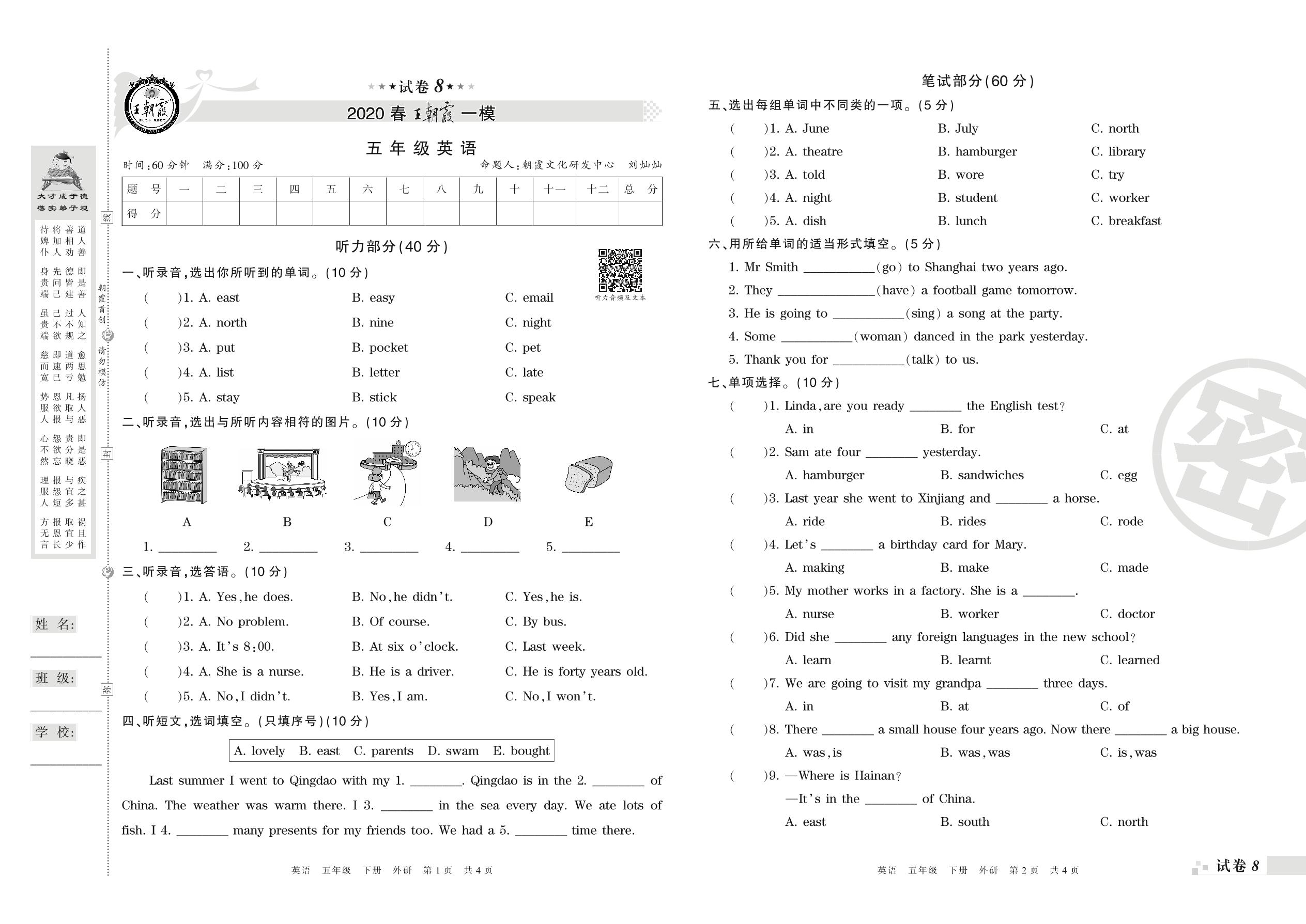 王朝霞期末模拟卷五年级下册英语(外研版)_R210807141921【8】