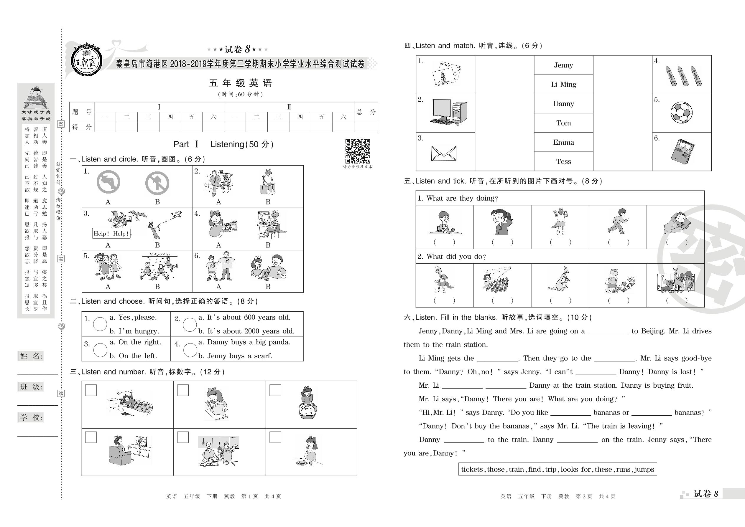2018-2019学年第二学期秦皇岛市海港区五年级英语试卷(冀教版)【8】