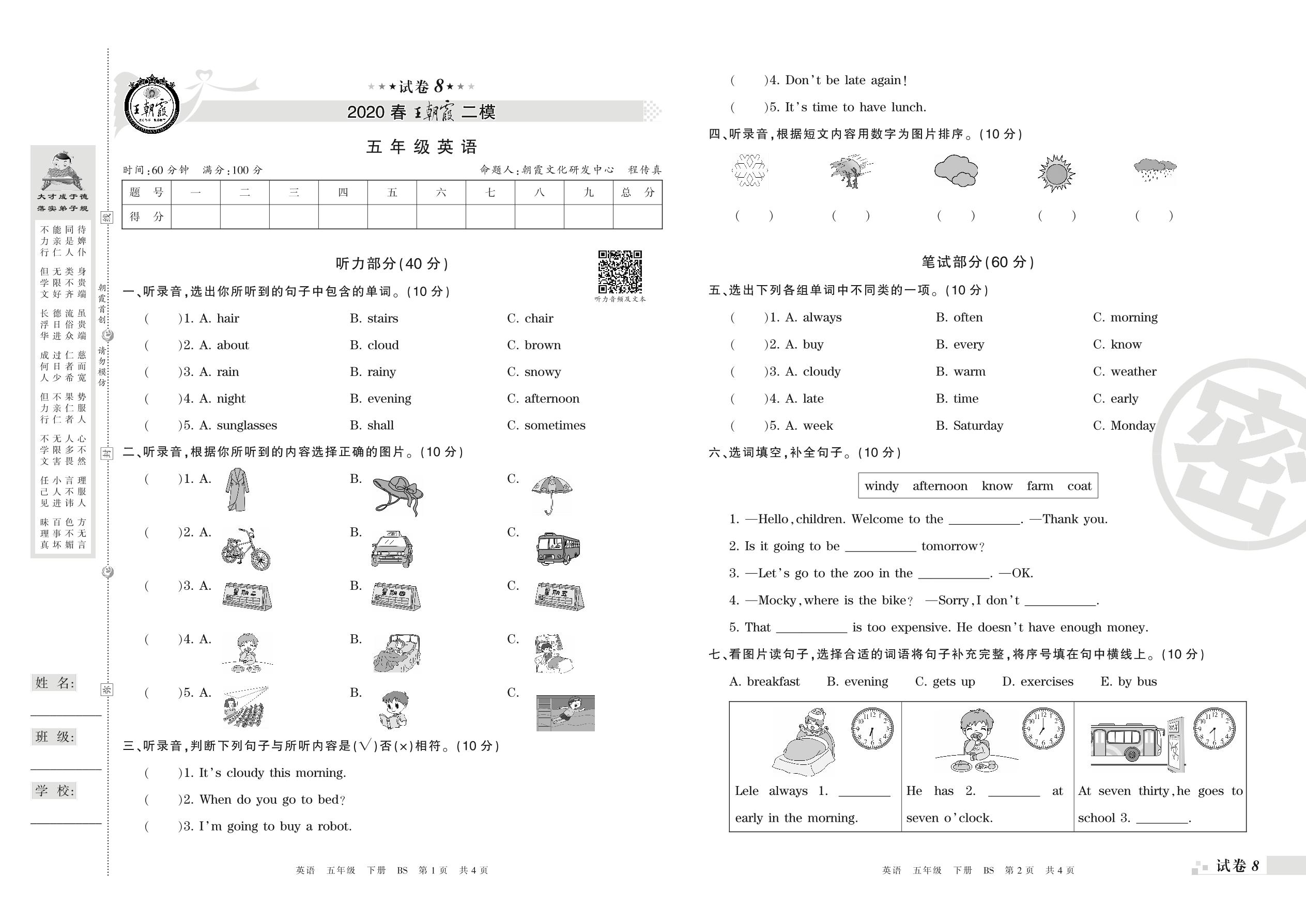 王朝霞期末模拟卷五年级下册英语(北师版)_R210807142244【8】