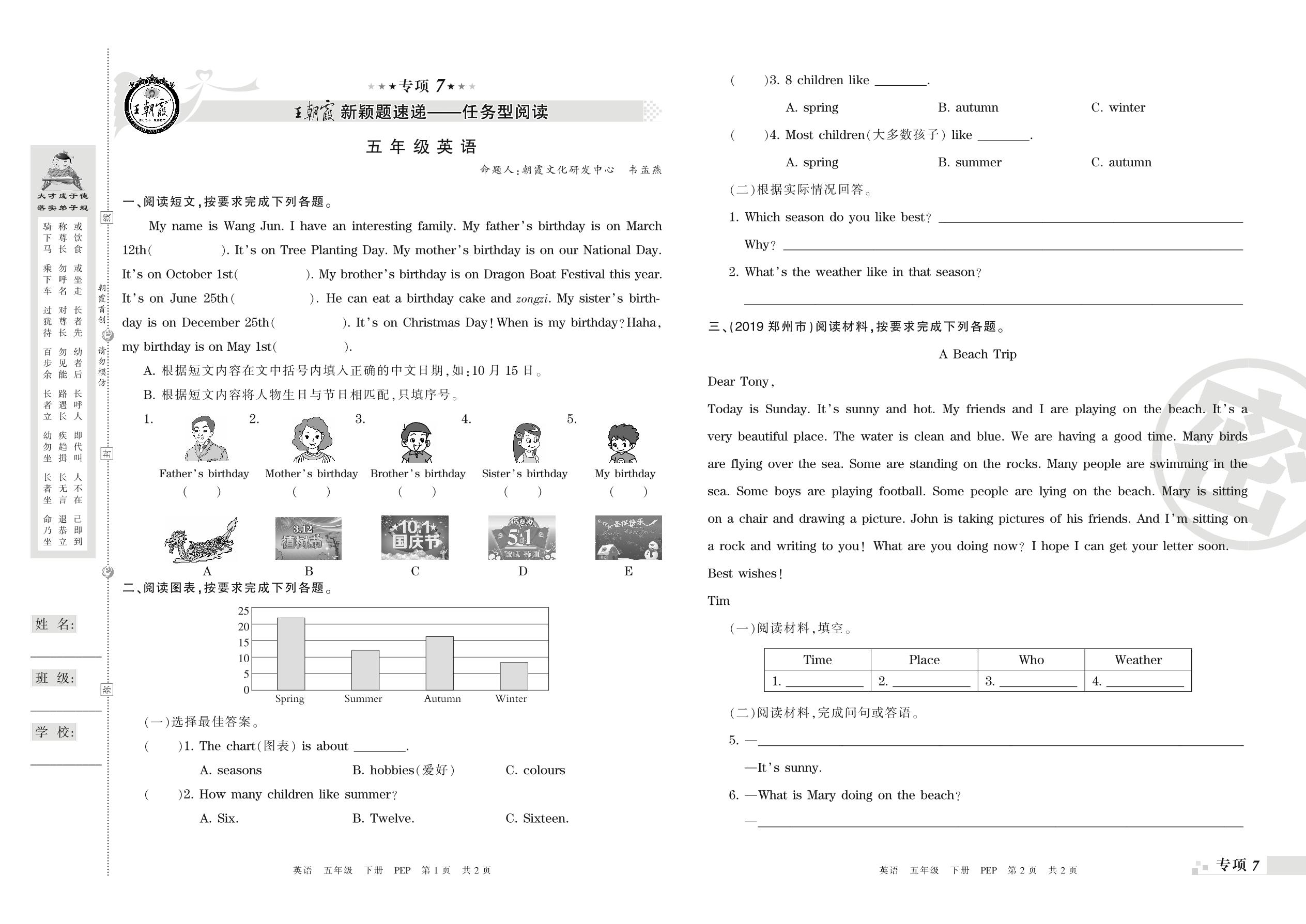王朝霞期末专项卷——新颖题速递:任务型阅读、绘本阅读五年级下册英语(PEP版)_R210807142304【0】