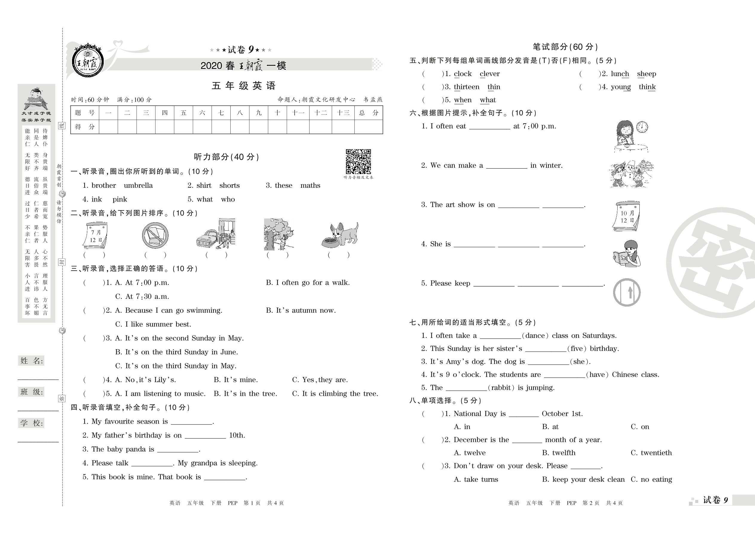 王朝霞期末模拟卷五年级下册英语(PEP版)_R210807142343【9】