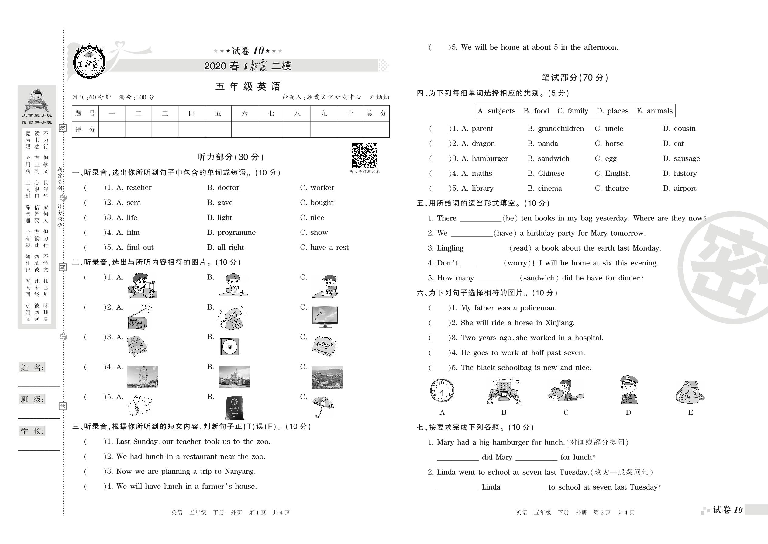 王朝霞期末模拟卷五年级下册英语(外研版)_R210807142459【10】