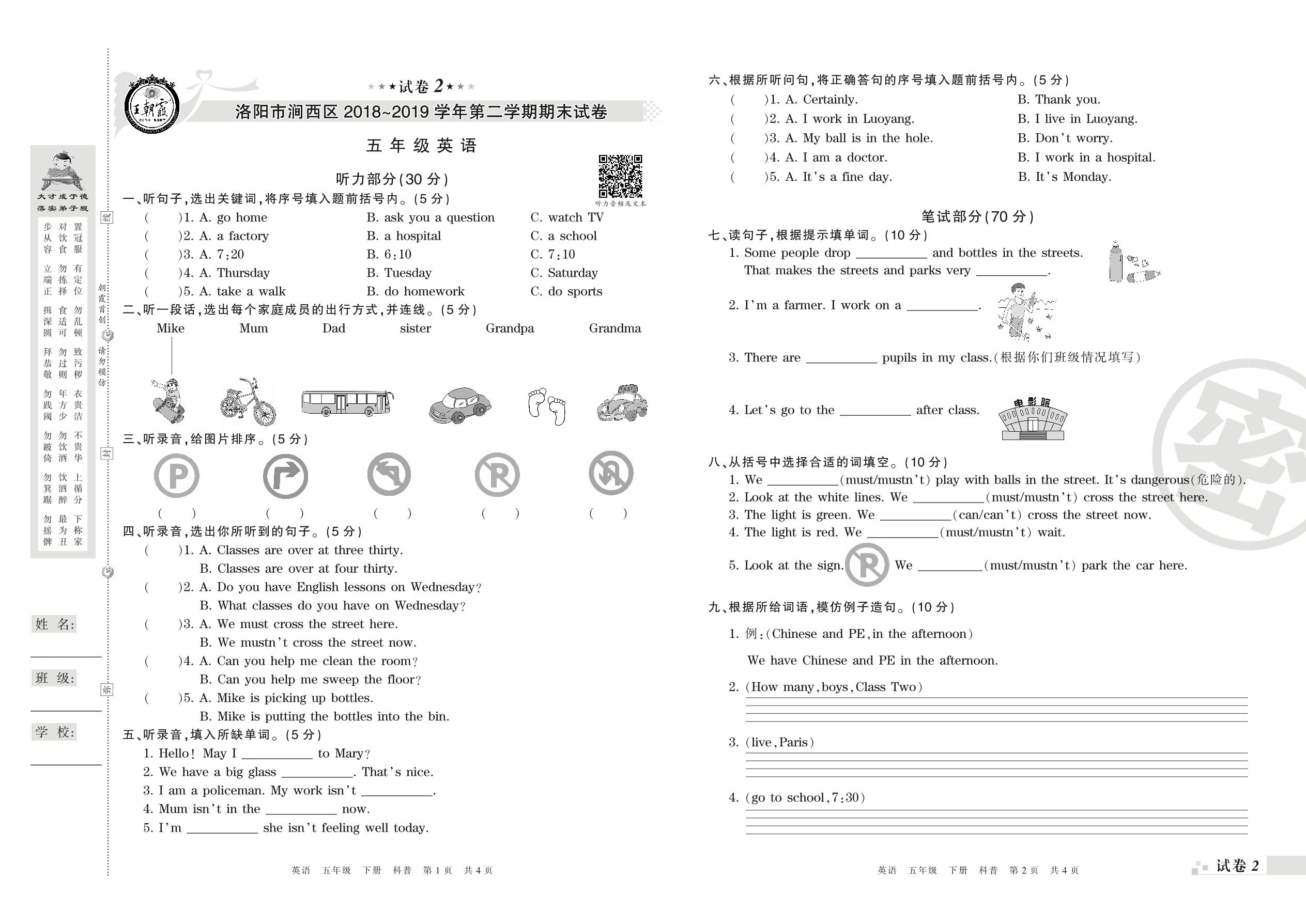 2018-2019学年第二学期洛阳市涧西区五年级英语试卷(科普版)_R210807142534【2】