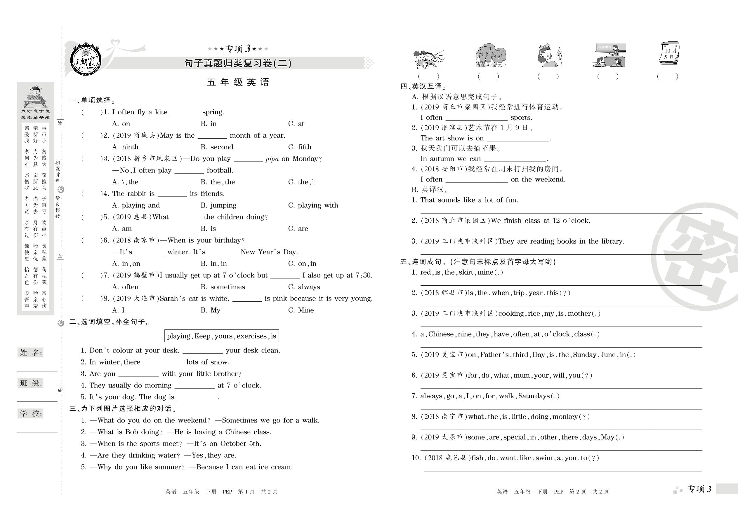 王朝霞期末专项卷——句子(二)、情景交际真题归类复习卷五年级下册英语(PEP版)_R210807142627【0】