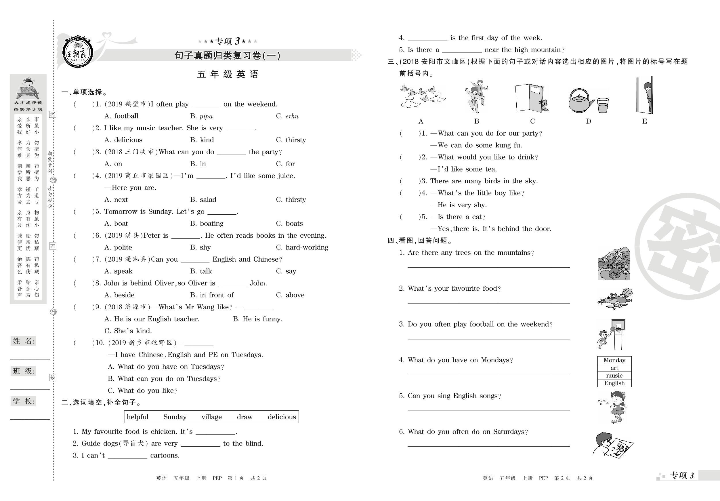 王朝霞期末专项卷——句子真题归类复习五年级上册英语(PEP版)_R210807142752【0】
