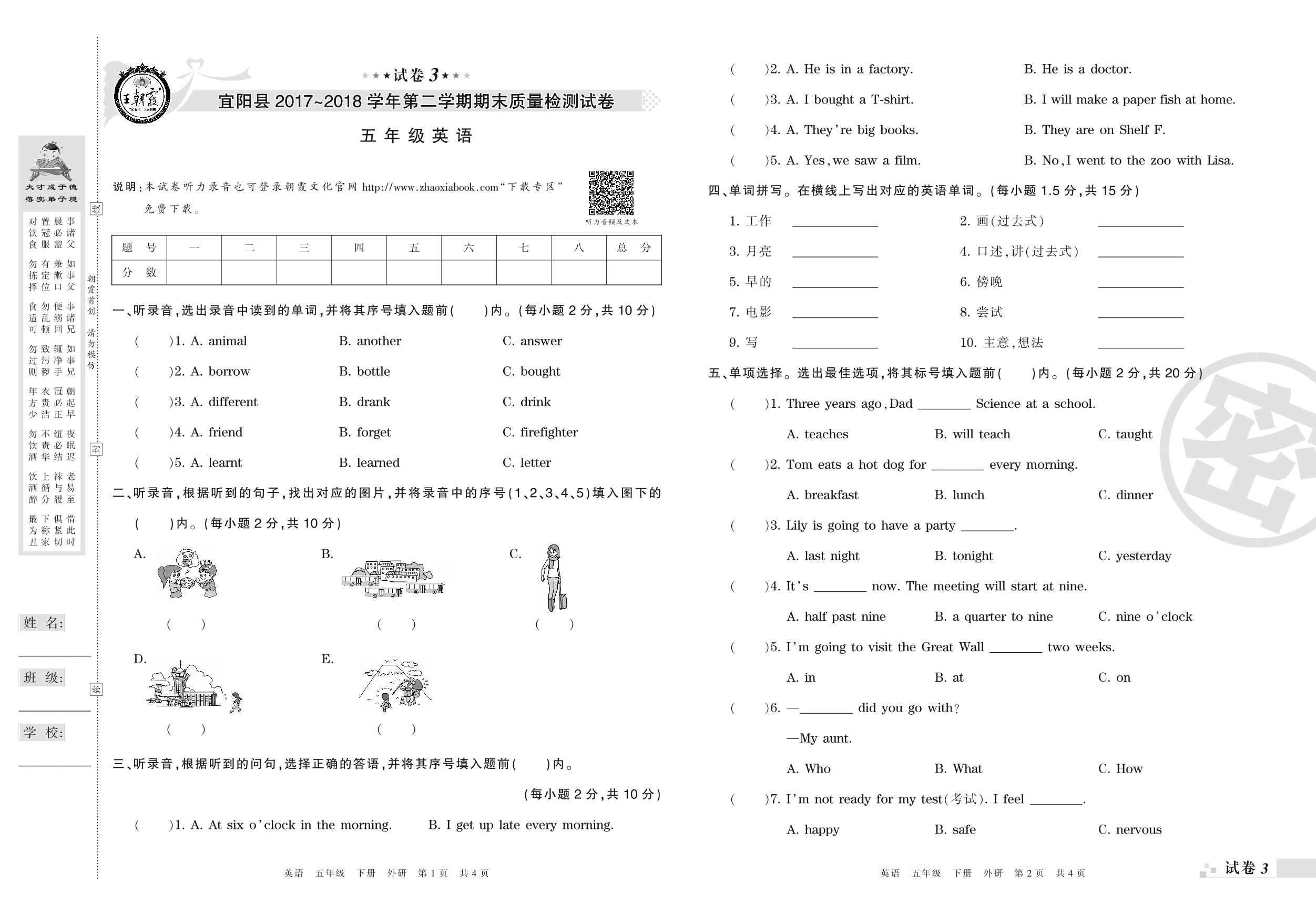 2017-2018学年第二学期洛阳市宜阳县五年级英语试卷(外研版)【3】