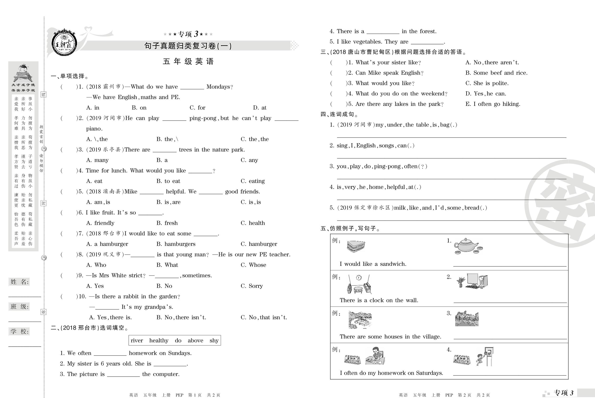 王朝霞期末专项卷——句子真题归类复习五年级上册英语(PEP版)_R210807143142【0】