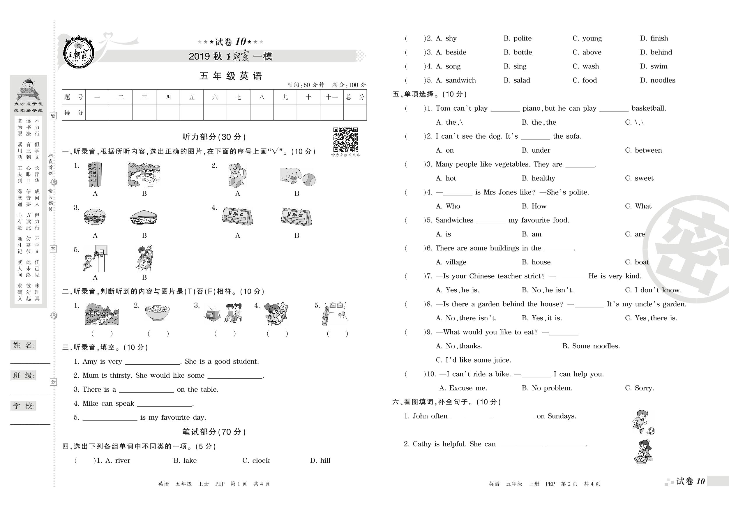 王朝霞期末模拟卷五年级上册英语(PEP版)_R210807143224【10】