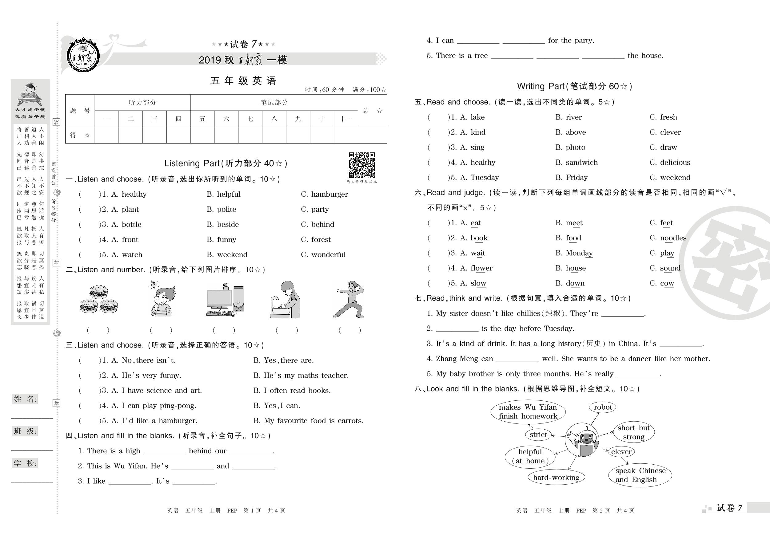 王朝霞期末模拟卷五年级上册英语(PEP版)_R210807143303【7】