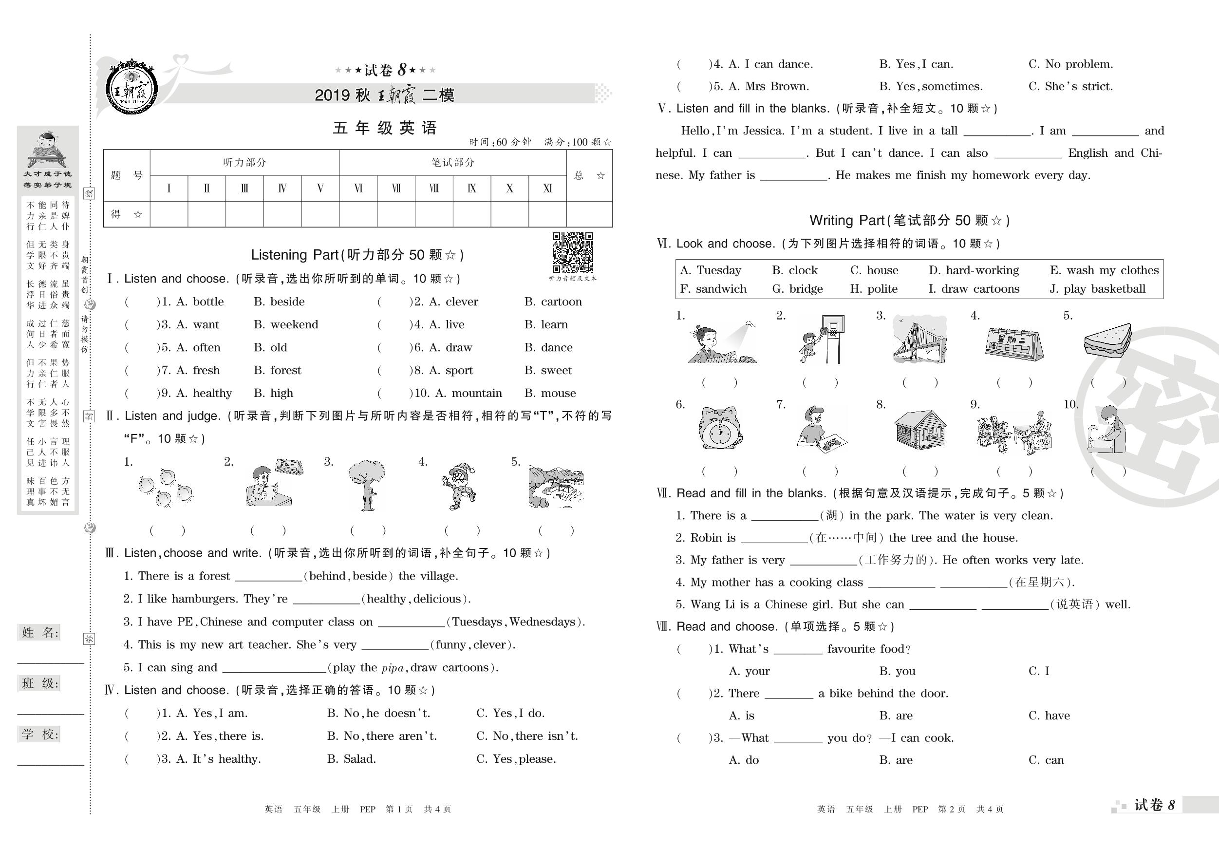 王朝霞期末模拟卷五年级上册英语(PEP版)_R210807143306【8】