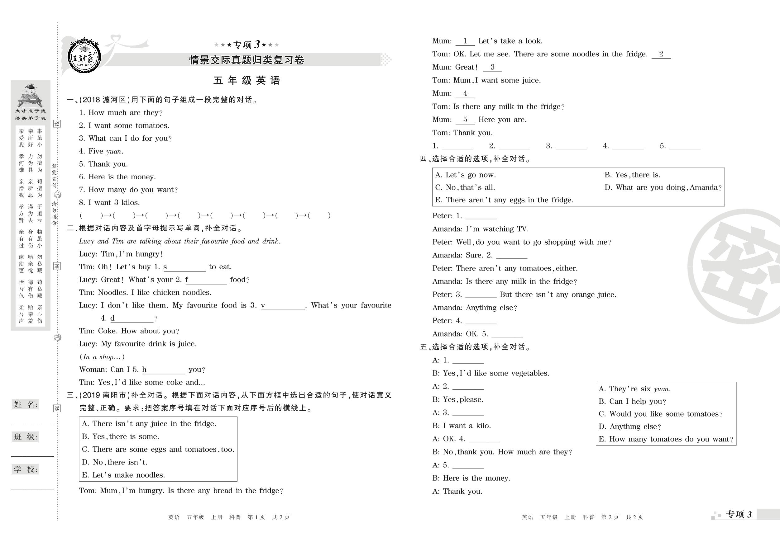 王朝霞期末专项卷——情景交际、阅读理解真题归类复习五年级上册英语(科普版)_R210807143329【0】