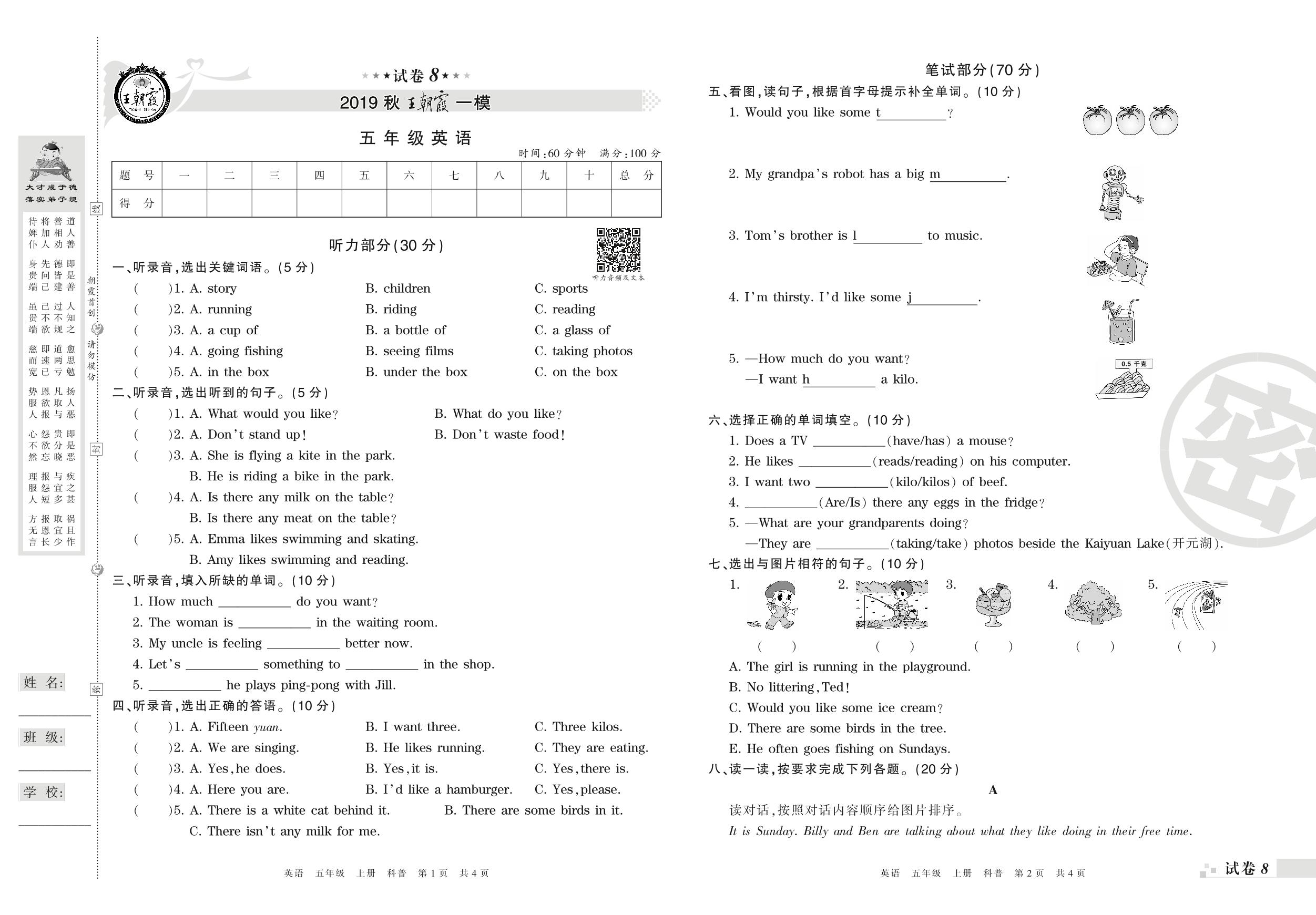 王朝霞期末模拟卷五年级上册英语(科普版)_R210807143403【8】