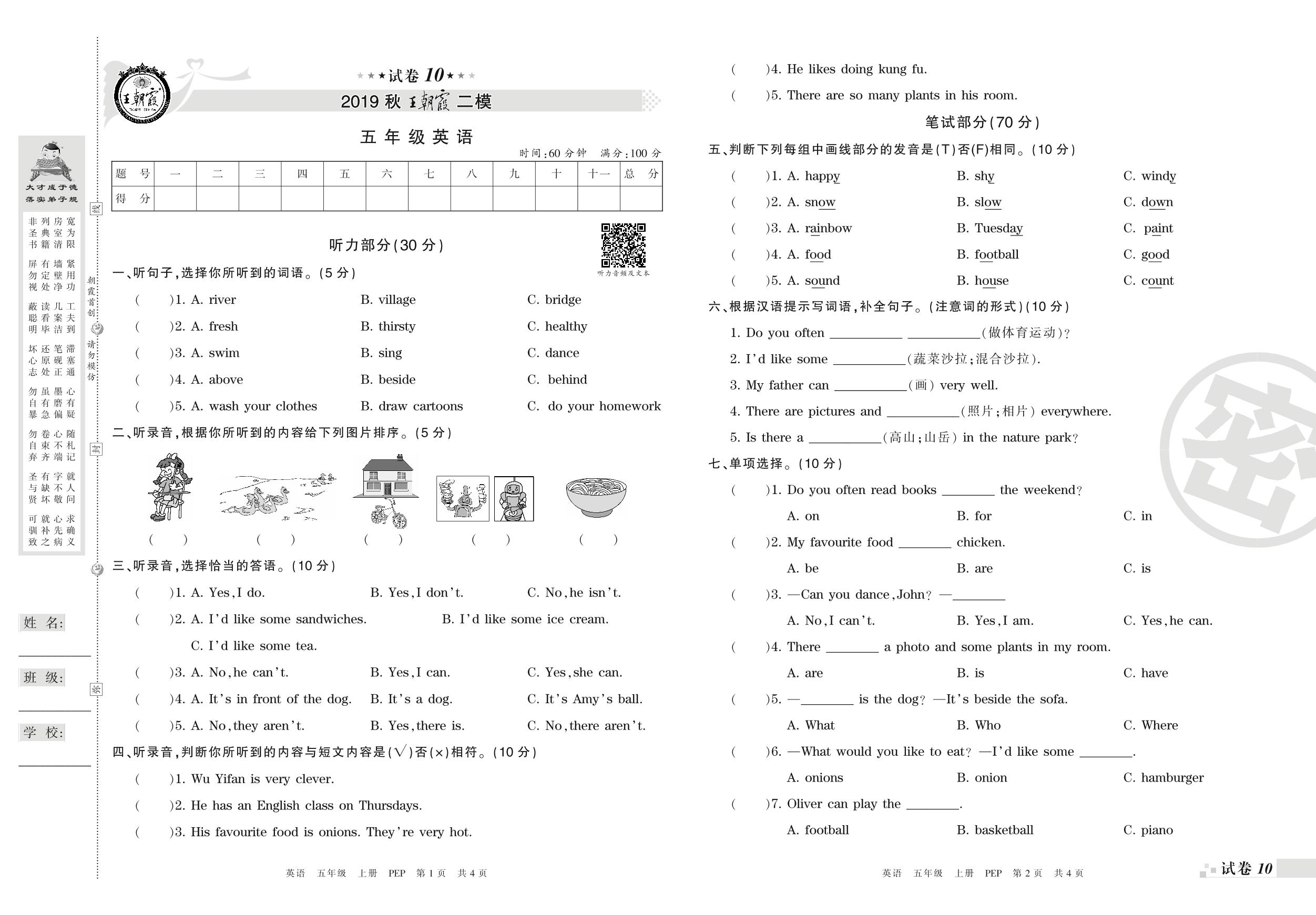 王朝霞期末模拟卷五年级上册英语(PEP版)_R210807143538【10】